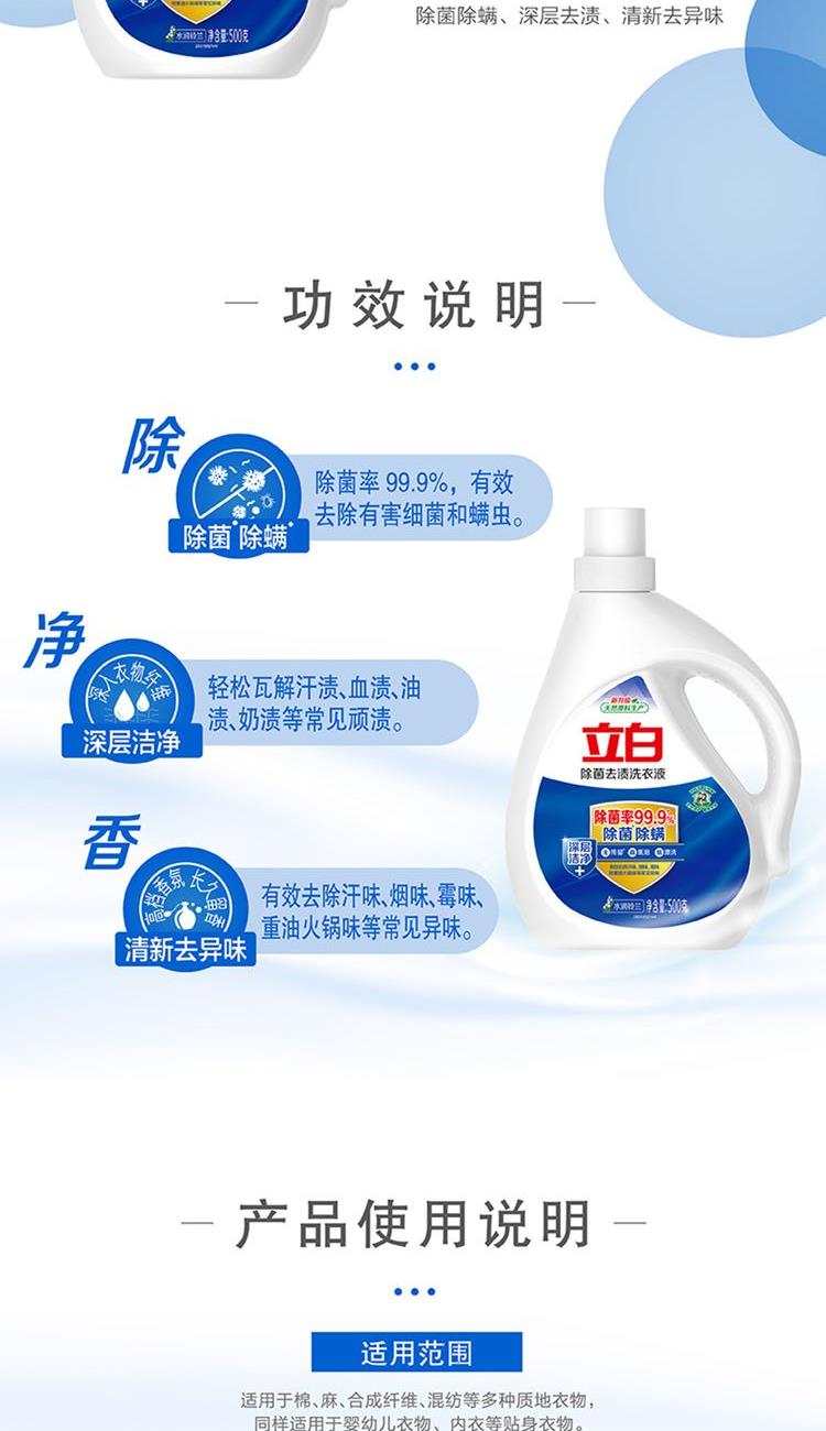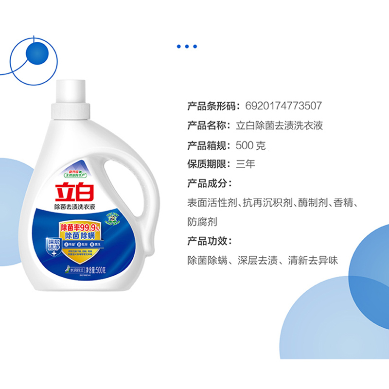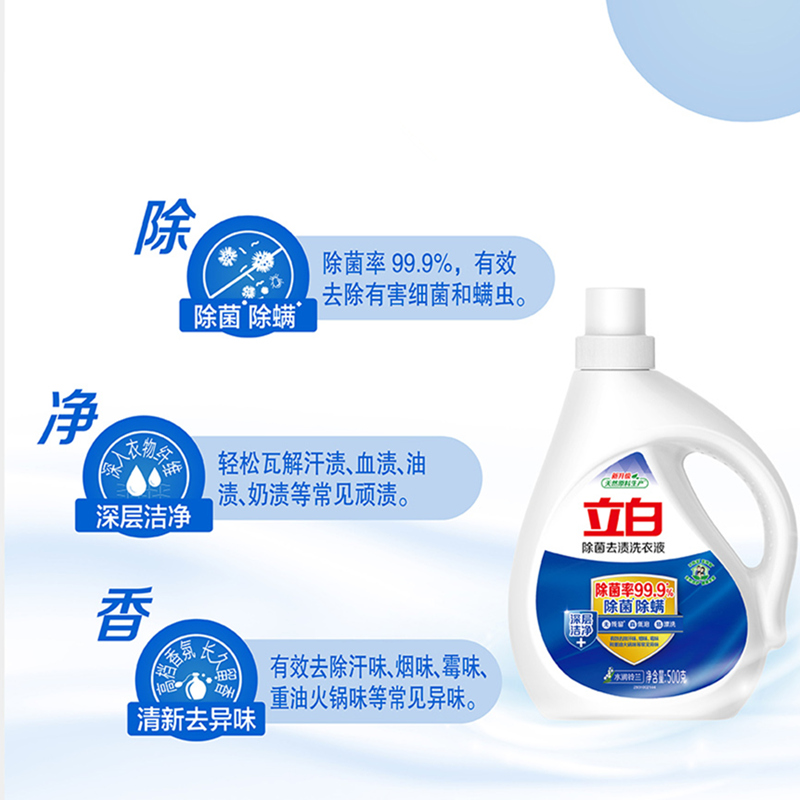 保质期限:三年 产品成分:表面活性剂、抗再沉积剂、酶制剂、香精、防腐剂产品功效:除 菌除螨、深层去渍、清新去异味
