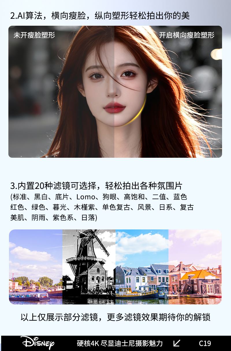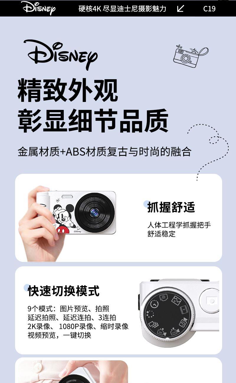 迪士尼C19潮流美颜翻转屏CCD数码相机