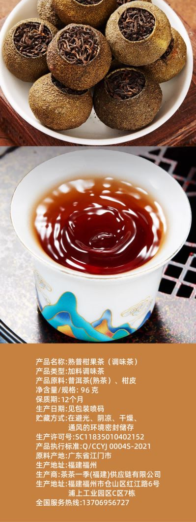 产品规格:熟普柑果茶12g*8颗 产品尺寸:21*20*8cm 保质期:12个月 茶茶一季熟普柑果茶96g(12g*8颗),以“柑香馥郁·醇厚甘润”为核心卖点。 经“半生晒+低温烘焙”传统工艺融合,柑皮油胞饱满、果香清甜,熟普茶汤醇厚顺滑、回甘持久,二者在陈化中自然交融,形成柑香与茶韵交织的独特风味; 包装采用深绿与棕色调,搭配柑果茶具图案既显自然质朴又具便携提手设计,每颗12g独立封装适配“一颗一泡一整天”的便捷需求,8颗装礼盒兼顾日常自饮与轻量级赠礼场景; 富含茶多酚、黄酮类化合物及维生素C,尤其适合餐后解腻、秋冬润燥或日常养生; 柑果的温润甘甜与熟普的醇厚陈韵相得益彰,茶汤红浓透亮如琥珀,入口先觉柑果清鲜,继而转为普洱的糯滑甘甜,余韵悠长,是兼具口感享受、健康价值与便捷性的高品质柑普茶优选。