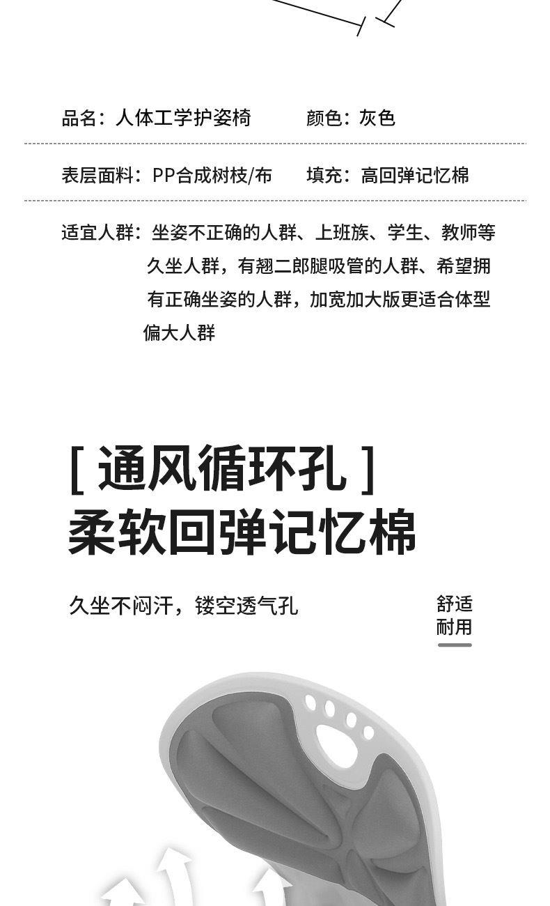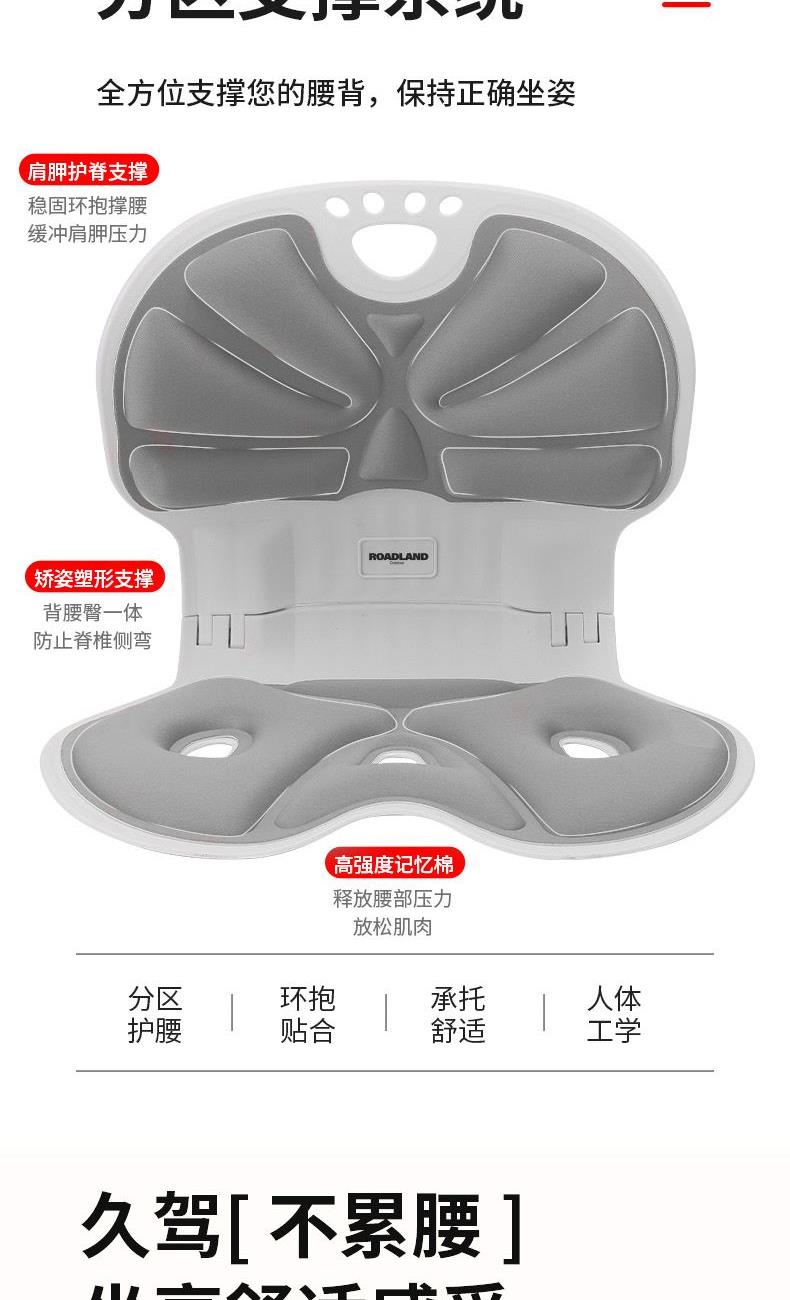 颜色:灰色 型号:LD-YD201 材质:PP合成树脂/布 适合体重:200斤以内 展开尺寸:410*370*400mm 1、人体工程学设计,分区支撑系统 ,腰部支撑位,可四档上下调节,支撑您的腰背,保持正确坐姿 2、可折叠设计 轻量便携出门 3、通风循环孔 柔软回弹记忆棉 可拆卸清洗 4、曲面撑腰塑形 久坐也舒适