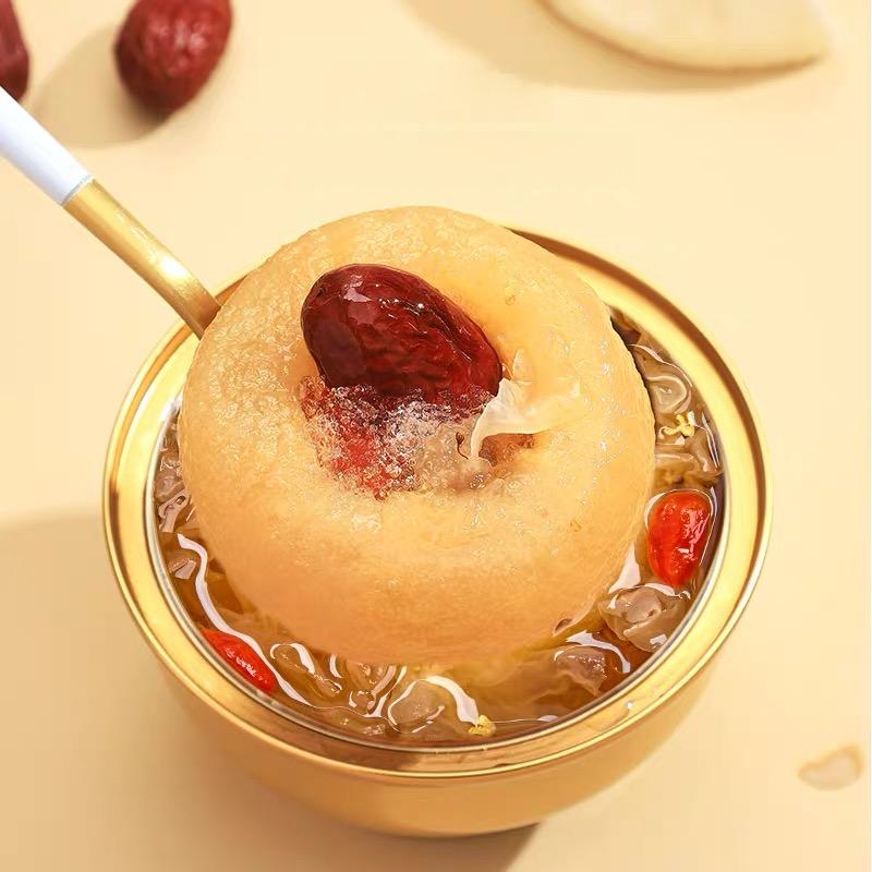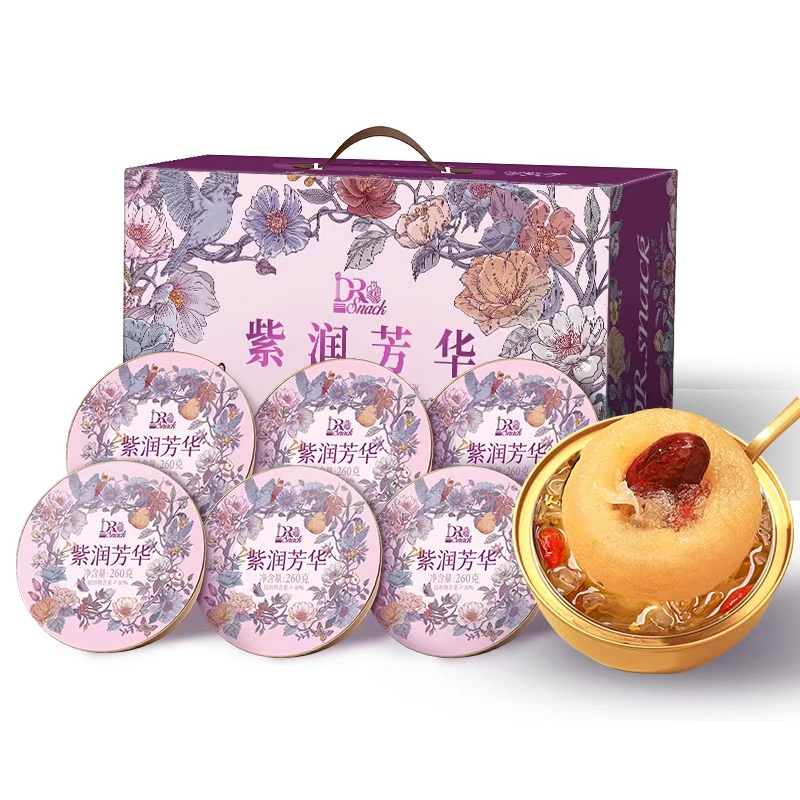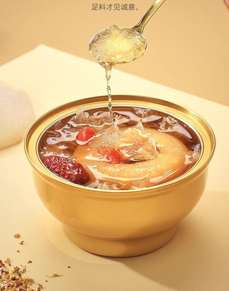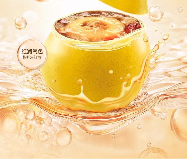 轻煮漫时光、鲜炖整颗梨、一撕即享、开碗即食 【配料】饮用水、鲜梨、鲜银耳、冰糖、红枣、枸杞 【产地】福建省·宁德市 【生产日期】(见包装打码处) 【贮藏条件】避免阳光直射,置放于阴凉通风干燥处 【产品标准号】Q/TXGF0002S 【食品生产许可证号】SC10935092203484 【保质期】12个月 【规格】260gx6碗/盒