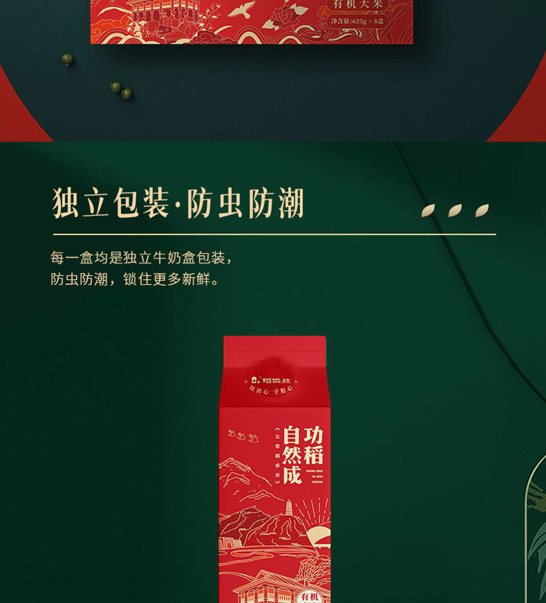 包装:充氮保鲜利乐包装 执行标准:GB/T 19266 保质期:6个月 质量等级:优质一级 产地:黑龙江五常市 产品尺寸:300mm*180mm*210mm 推荐理由: 1、五常有机稻花香2号米。 2、PICC人保承保产品。 3、稻田24小时实时监控。 4、智慧农业系统。 5、当月现磨新米发货。 6、独立溯源码。 7、屋顶盒充氮保鲜技术。