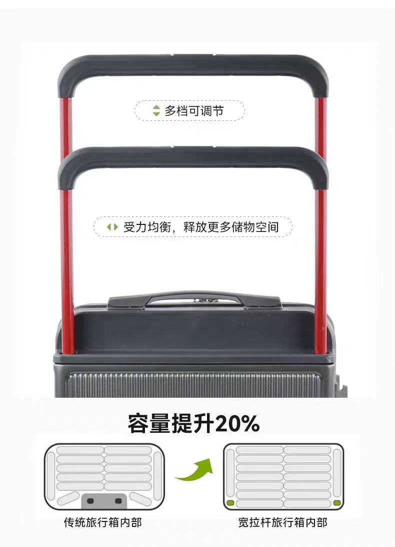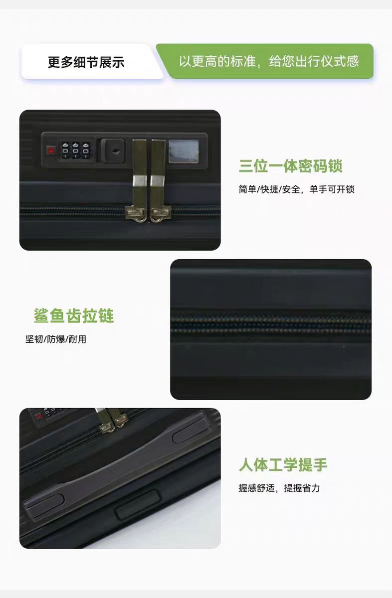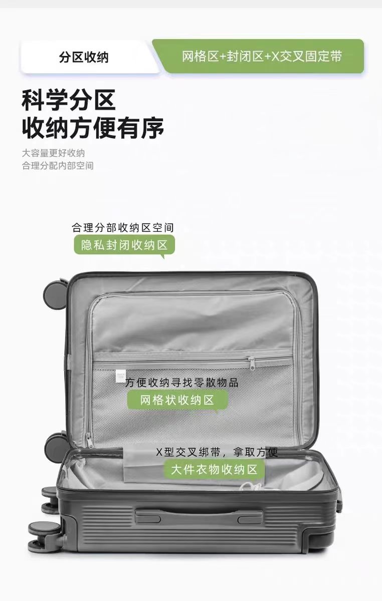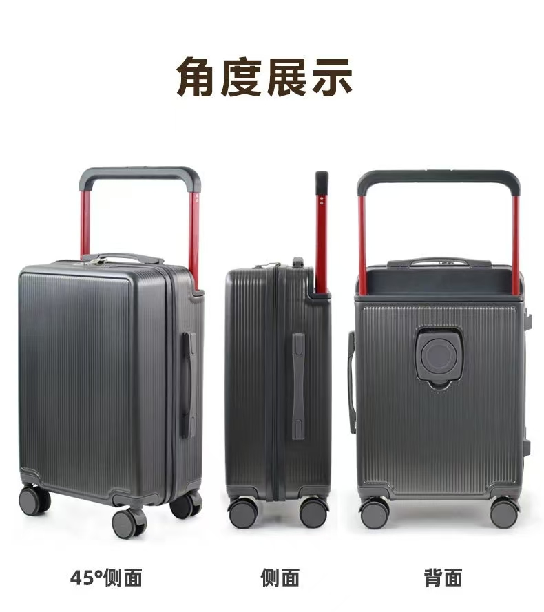三层防刮拜尔复合材质坚韧耐磨,细腻处理,质感丰富,受力均匀省力又稳固,后置拉杆更省空间,箱内空间使用率更高;后置可折叠便携杯架,咖啡、水杯、雨伞都可放这,更多隐藏功能期待你的解锁,360度轻音减震万向轮,畅滑省力,多路面行走不卡顿、不费劲,旅途优雅不打扰;三位一体密码锁,安全出行有保障,大容量网袋内衬,分区收纳更合理,外置USB接口,释放双手轻松出行无负担~