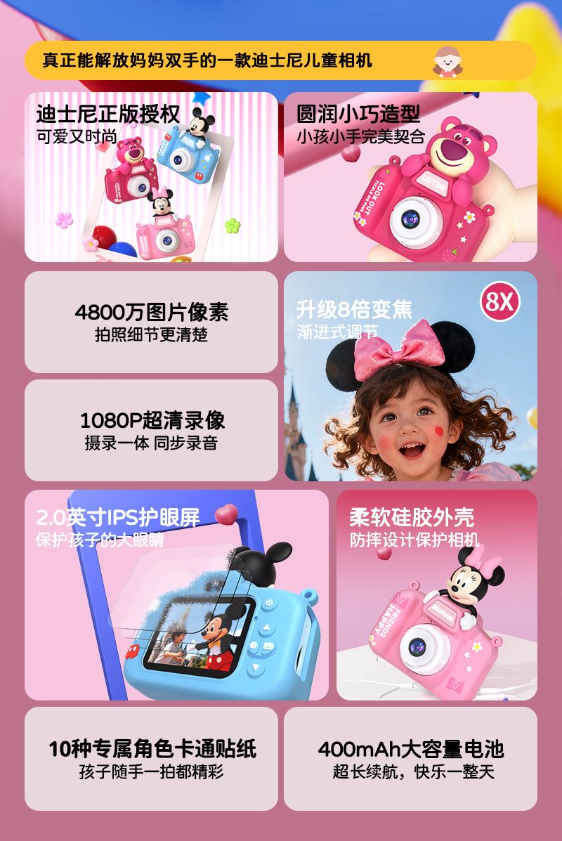 迪士尼系列C25立体公仔儿童相机镜礼盒装升级版