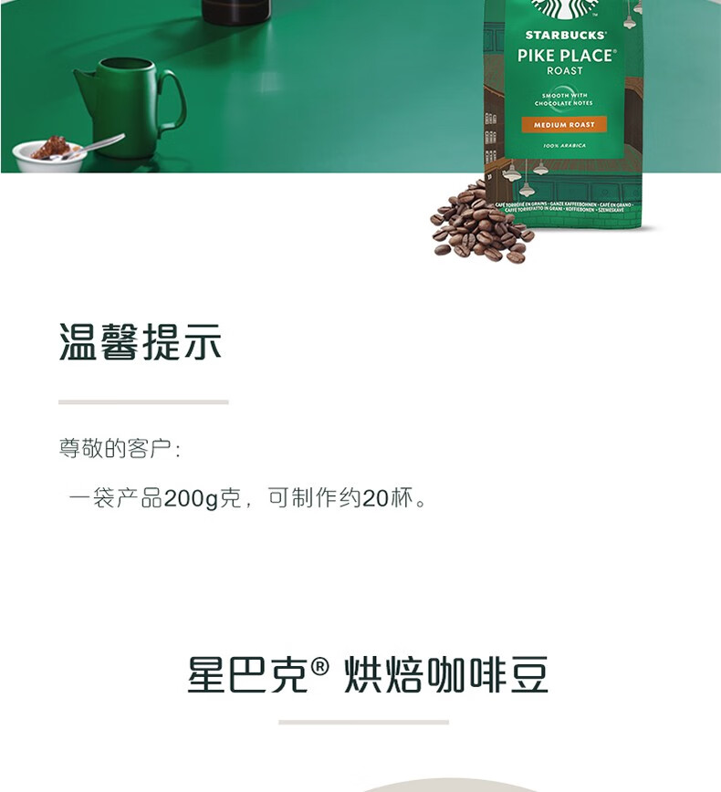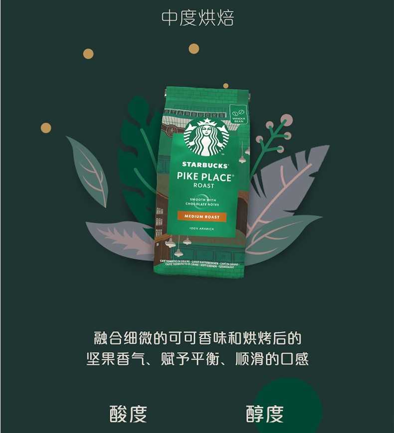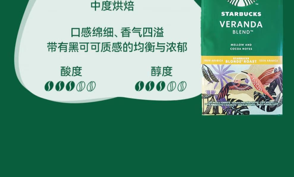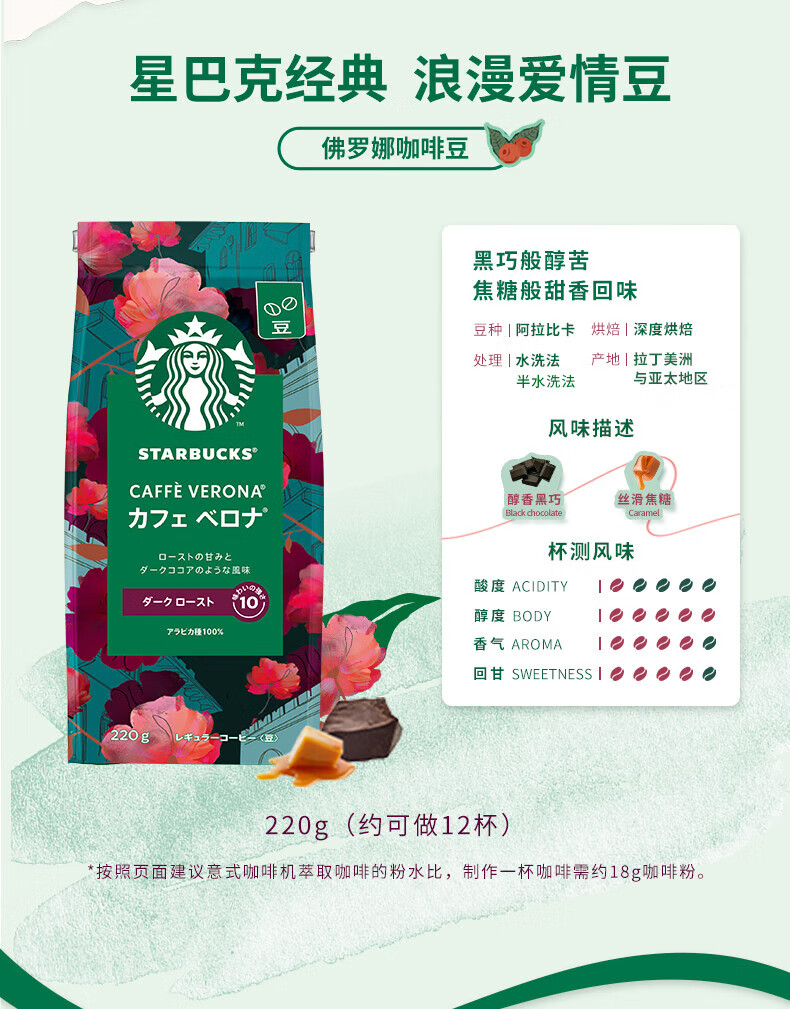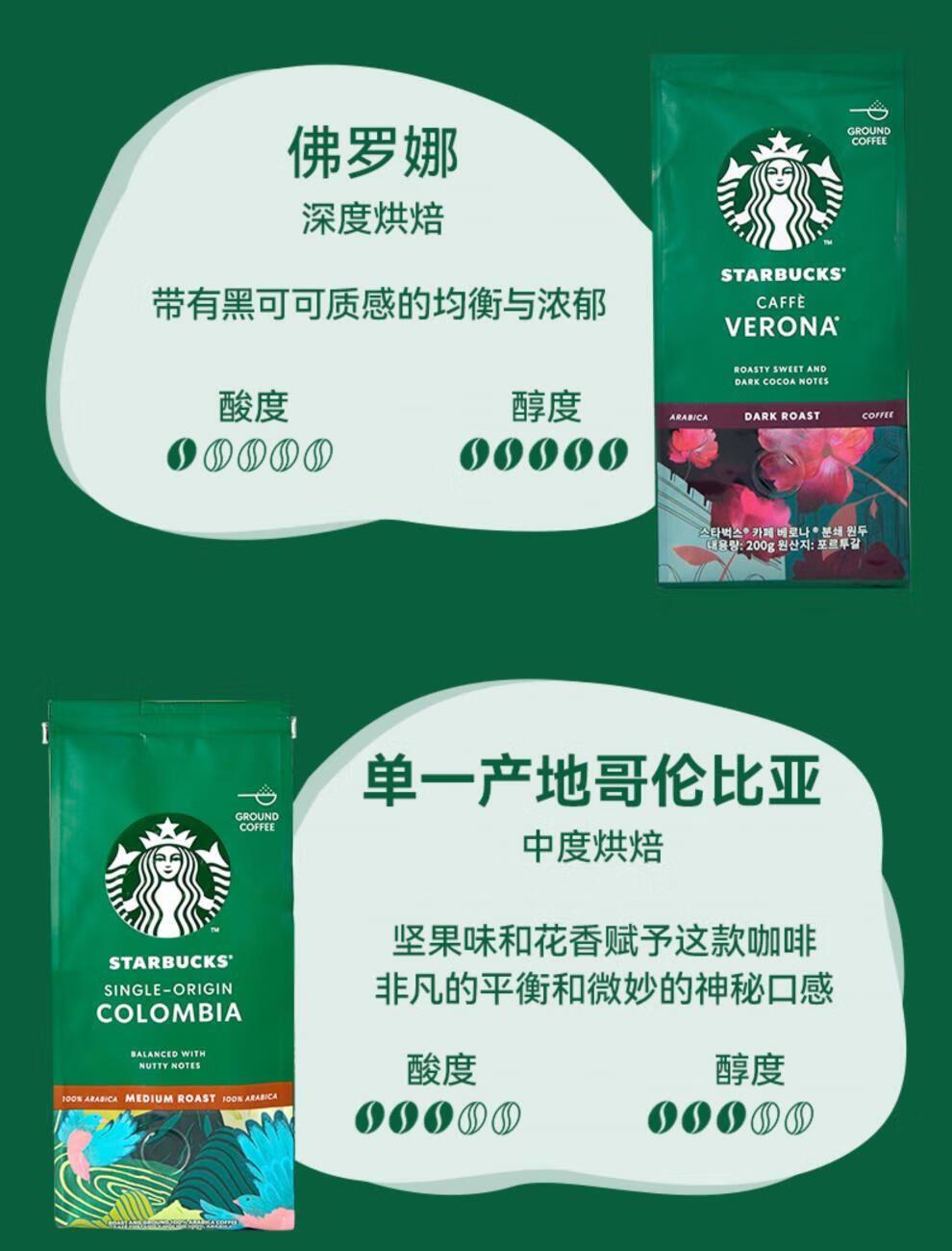星巴克精品烘焙咖啡豆佛罗娜220g深度烘焙黑咖啡