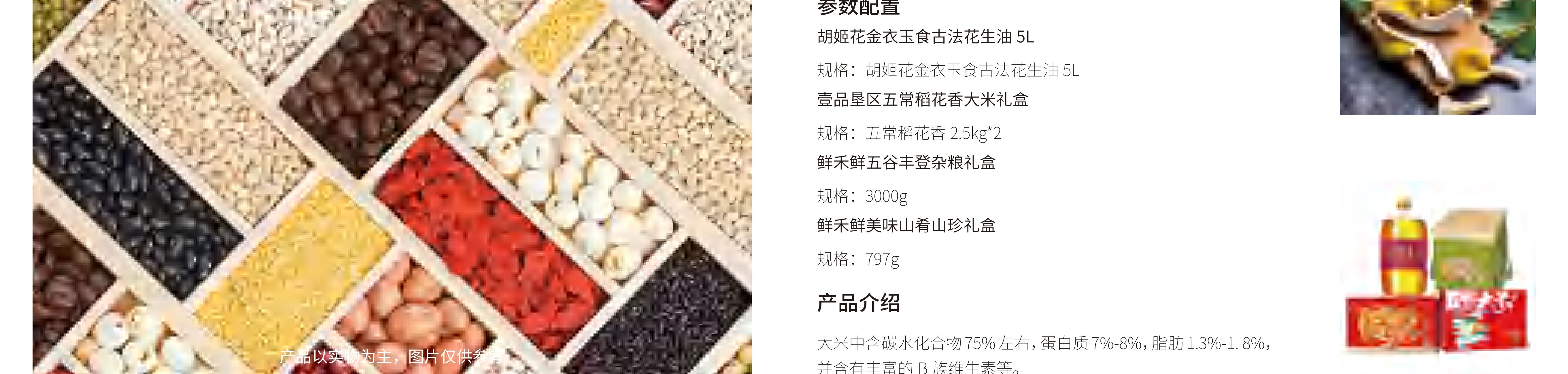 1 鲜禾鲜盐池滩羊礼盒C款3000g 2 格拉特澳洲进口牛肉礼盒A款2000g 卡苏奇特级初榨橄榄油礼盒500ml*2 3 渔老板干制海鲜798型干货礼盒 4 胡姬花金衣玉食古法花生油5L 壹品垦区五常稻花香大米礼盒5kg 鲜禾鲜五谷丰登杂粮礼盒3000g 鲜禾鲜美味山肴山珍礼盒797g 5 鲜禾鲜硕果缤纷坚果礼盒2078g 鲜禾鲜燕麦礼盒B款1440g 鲜禾鲜蜂蜜礼盒B款1000g 鲜禾鲜多彩心意大枣礼盒C款1500g 6 鲜禾鲜特鲜果礼盒E款约6000g 鲜禾鲜土鸡蛋60枚 7 亦佰味牛肉礼盒D款 8 海天油礼盒B款HT-H201D 鑫鲜礼熟食礼盒-E 君乐宝牧场纯牛奶 哈尔滨红肠礼盒-知足肠乐 9 宴卡皇12年鲟鱼子酱双罐装礼盒20g 10 金宝盆十参十鲍全家福礼盒2.5kg 11 海尔多功能电蒸箱 12 火象白色恋人七件套锅具 13 康宁多功能料理锅 14 九阳电饭煲 15 康宁餐具黑耀不粘刀具套装 16 THOMSON智能可视空气炸锅 17 米狗全网通智能手表黑色 18 大嘴猴24寸拉杆箱 19 米技有线真空吸尘器 20 猫灵克无线蓝牙耳机黑色 21 纵贯线双人单层帐篷+多功能毯 22 EZVALO简约麦克风K歌音箱