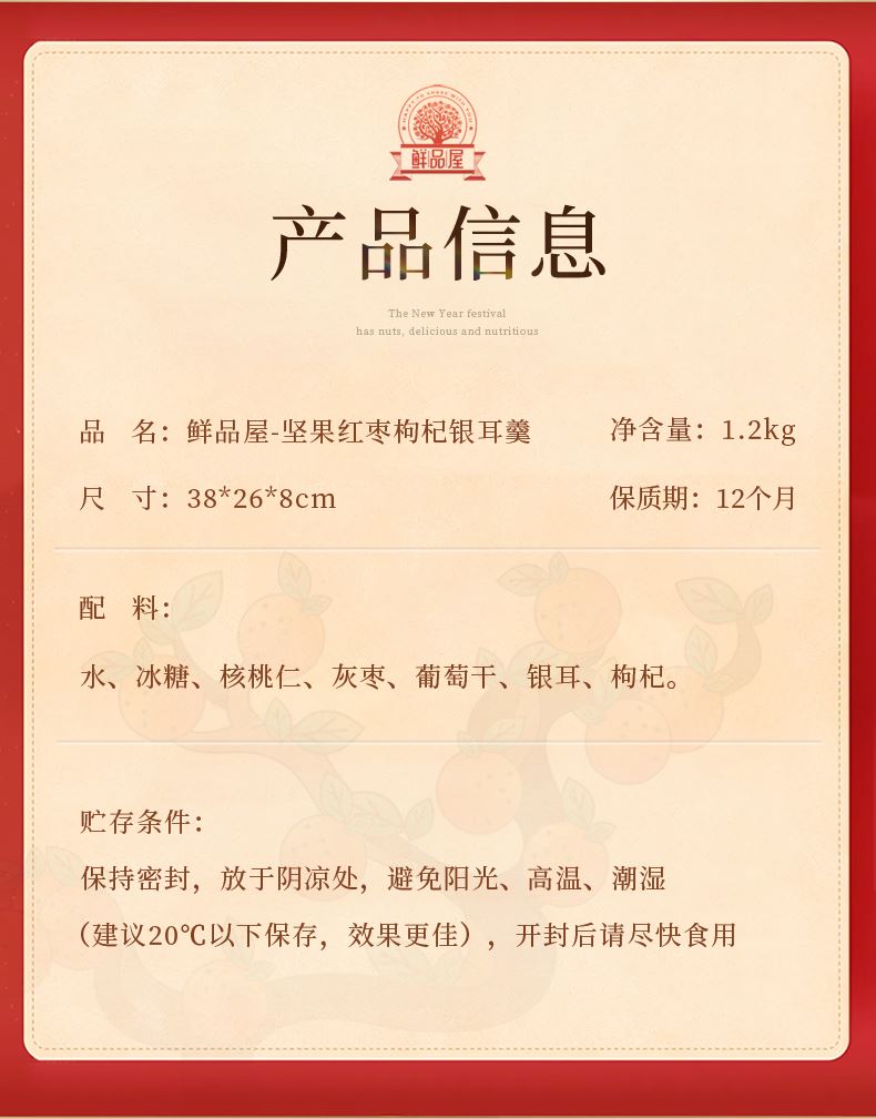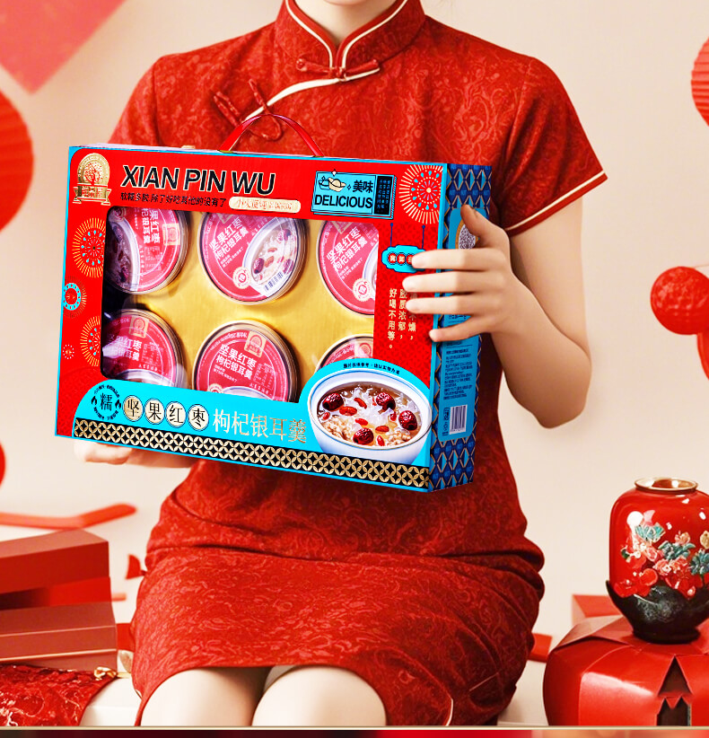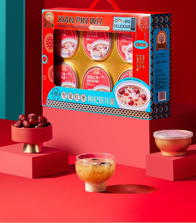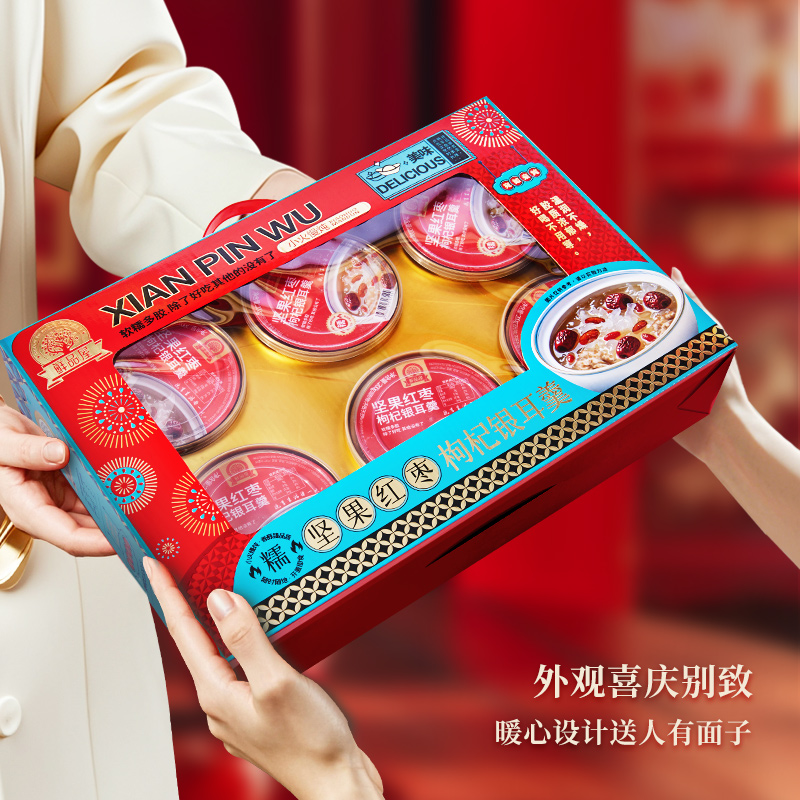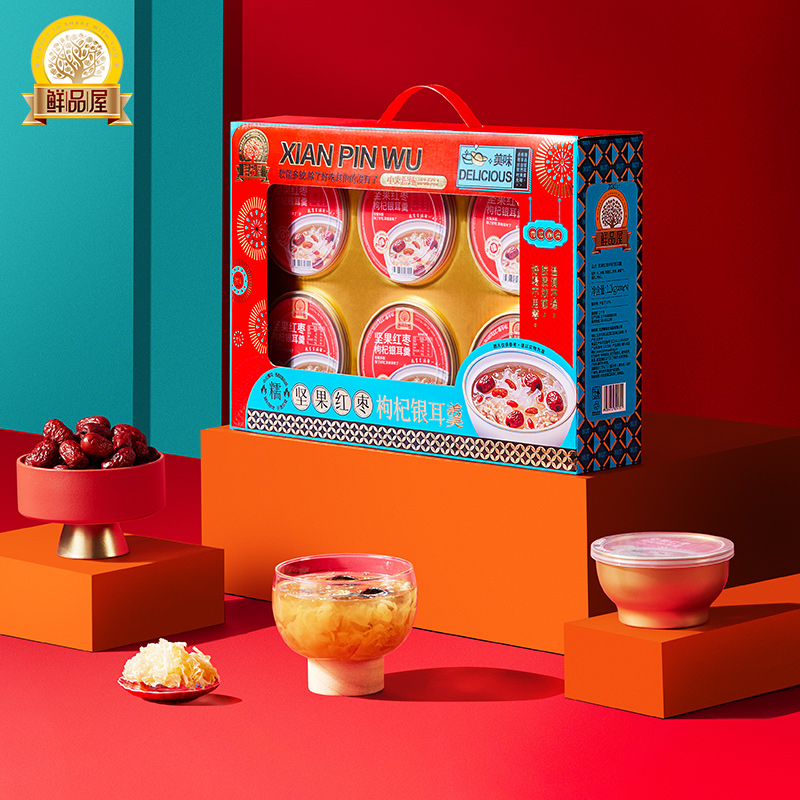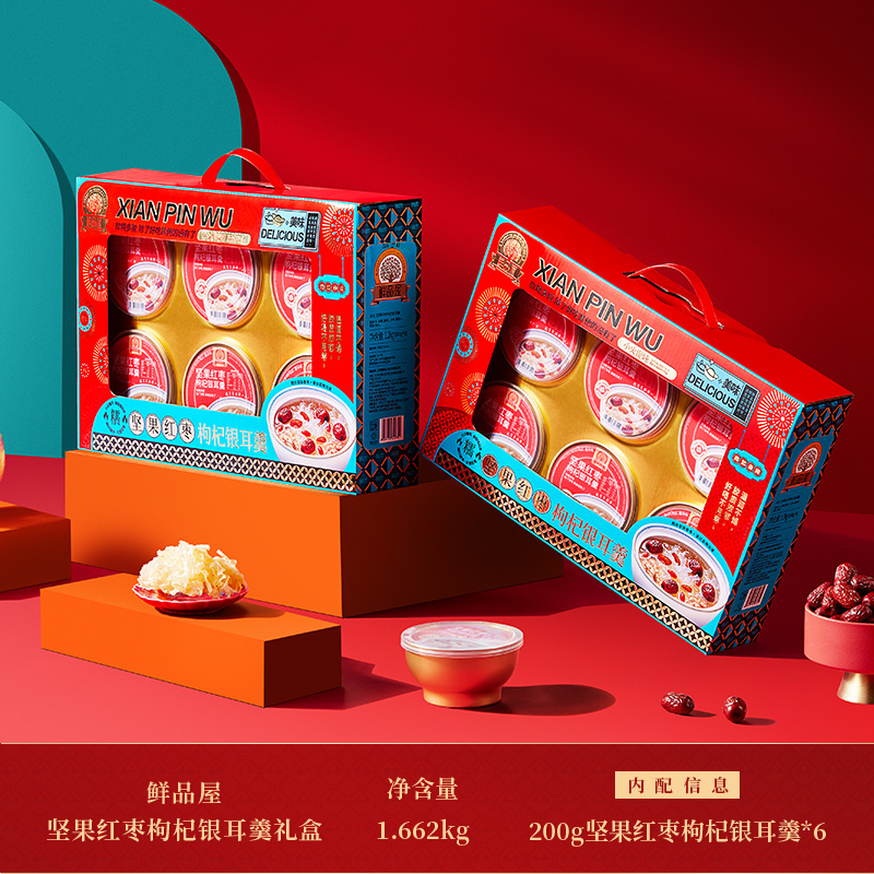 鲜品屋坚果红枣枸杞银耳羹1200g(200g*6碗)礼盒罐头