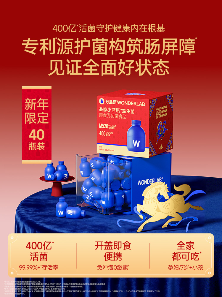 万益蓝益家小蓝瓶益生菌即食乳酸菌食品40瓶装26年新年CI款