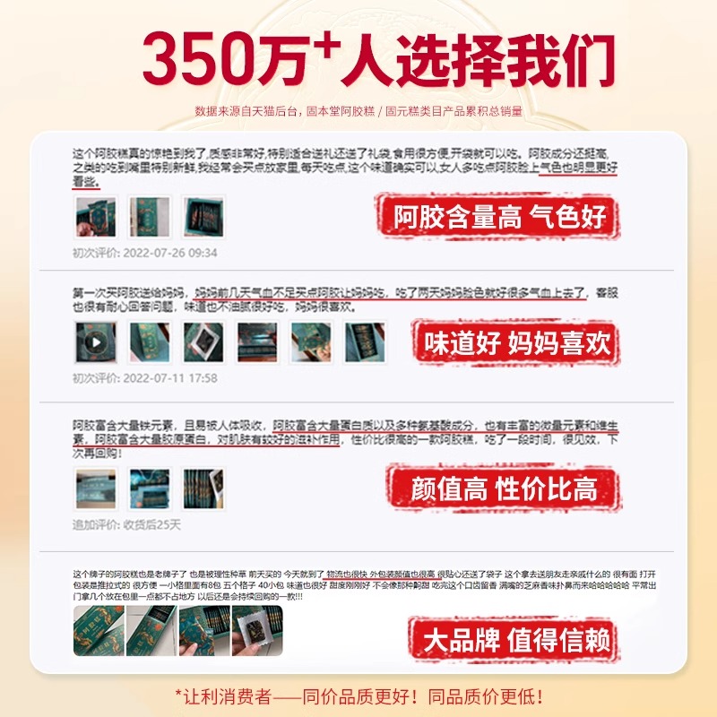 固本堂传统阿胶糕礼盒200g*2(两盒400克)
