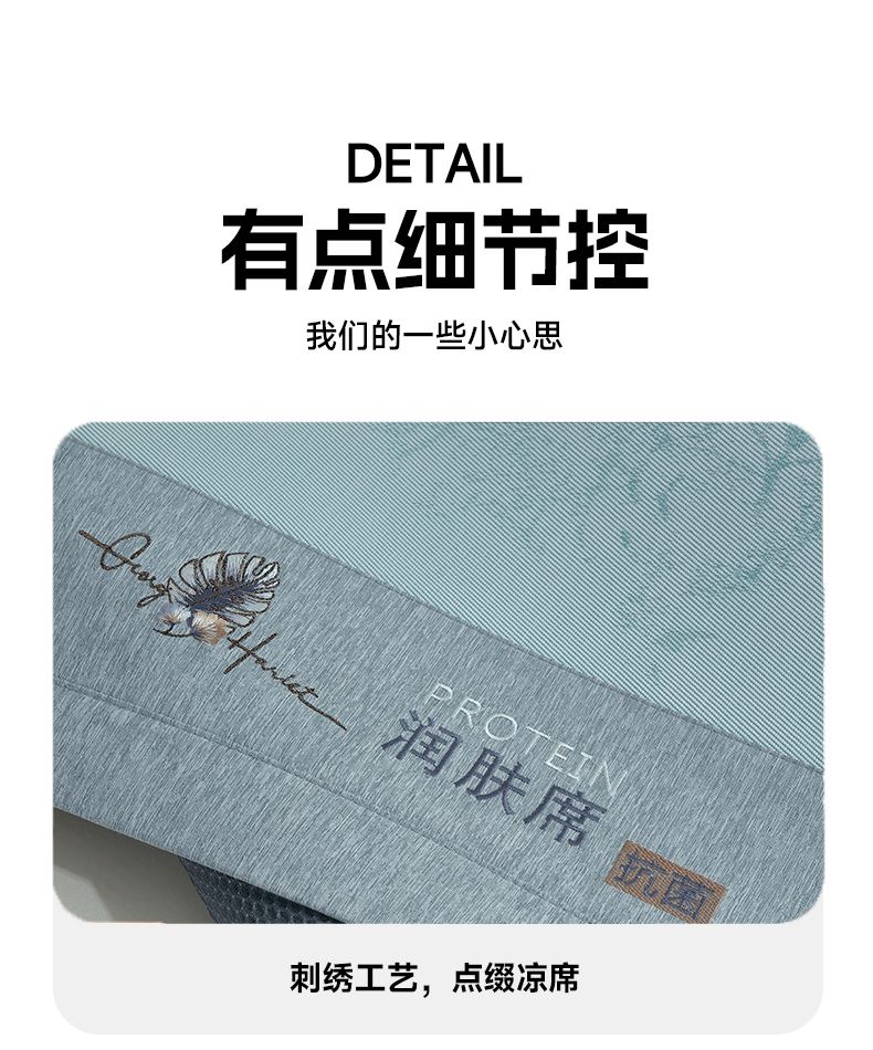 规格:180*200cm 枕套:48*74cm*2 面料:水洗冰丝 复合料:华夫格 执行标准:Q/TDY 01-2016 安全类别:GB18401-2010 B类 1.水洗冰丝严选优质冰丝为原材料,搭配凉感因子,注入凉席材料中温和清凉,适合多种人群使用。 2.经过原料选材、弯曲、统口、抛光、组装、编织等多道工序打磨出匠心凉席。