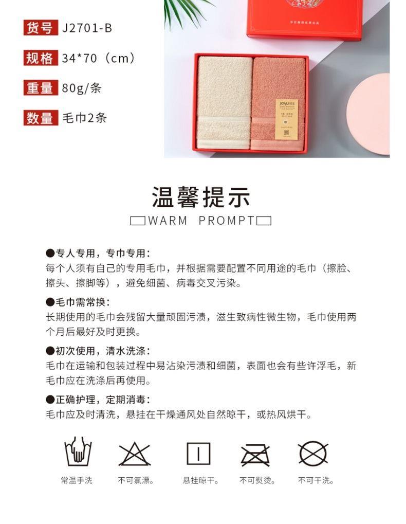 洁玉云舒毛巾双条装礼盒颜色随机J2701-B