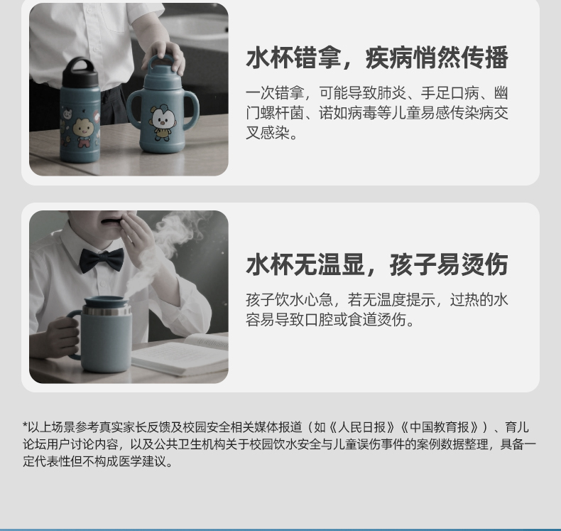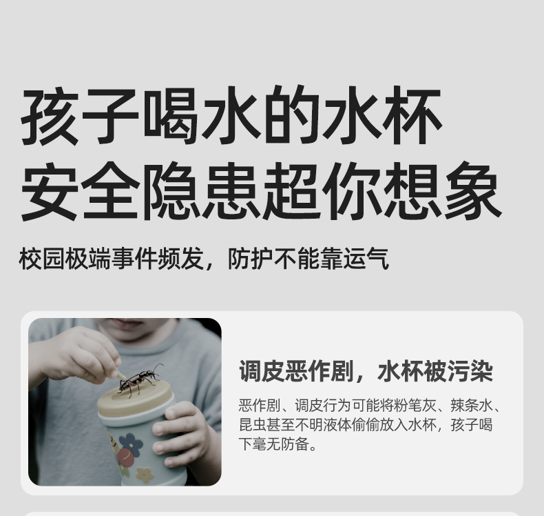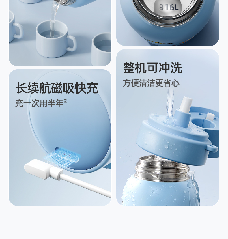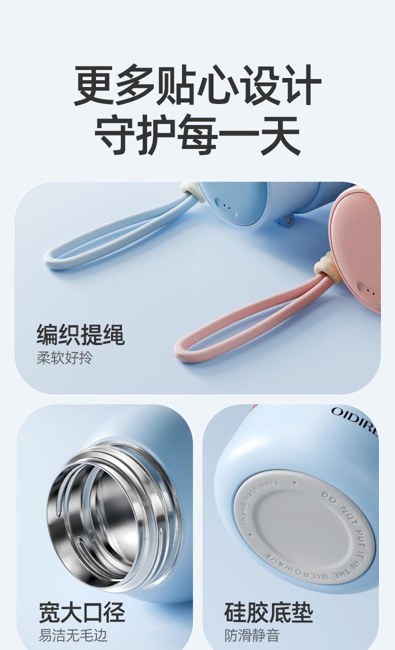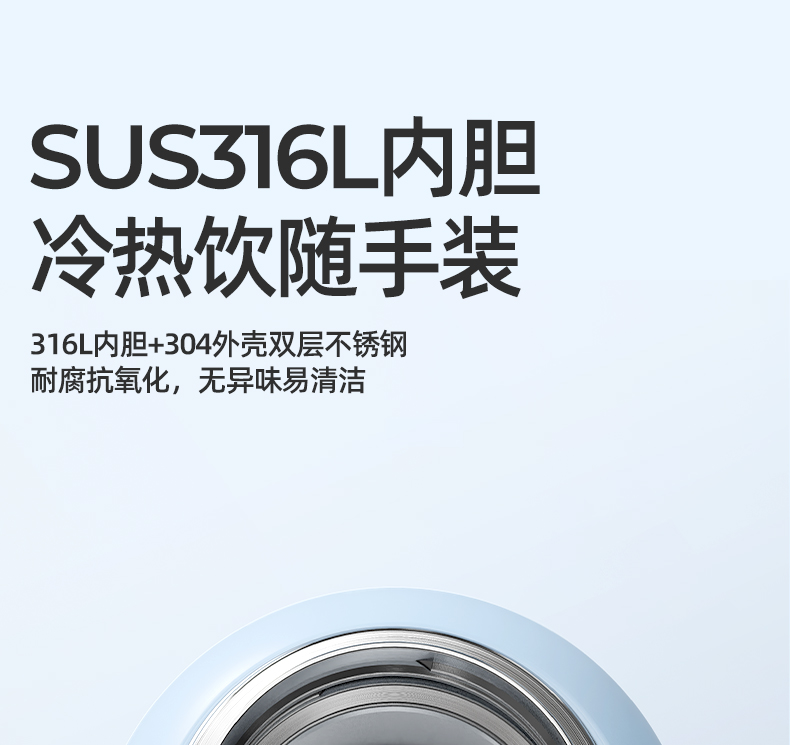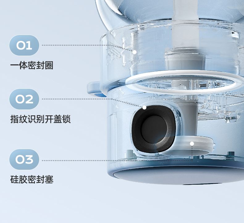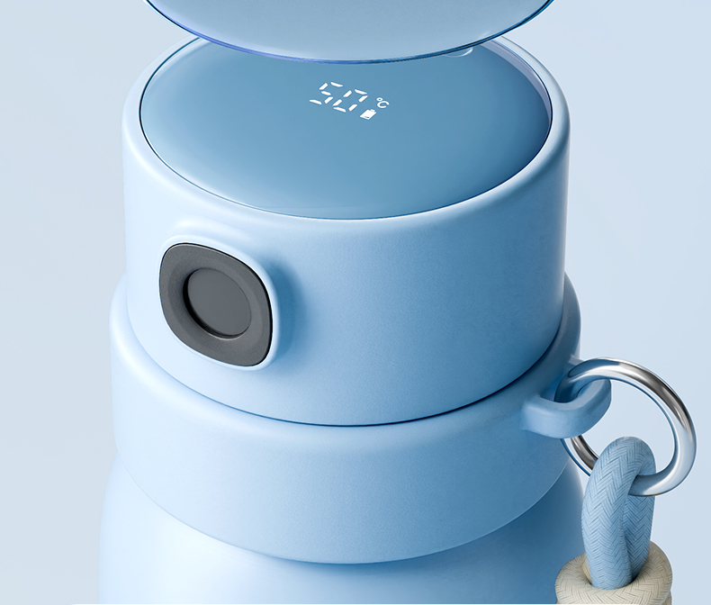 主要材质:316不锈钢内胆 电压:5V 容量:500ml 颜色:蒙德里灰、莱茵特粉、纳贝里蓝 1.指纹开锁,保护儿童饮水安全 2.316L不锈钢内胆,材质安全放心 3.盖子数显显示,能看内部水温 4.上盖不开锁,盖子拧不开 5.磁吸充电 6.双层不锈钢+抽真空,15h长效保温