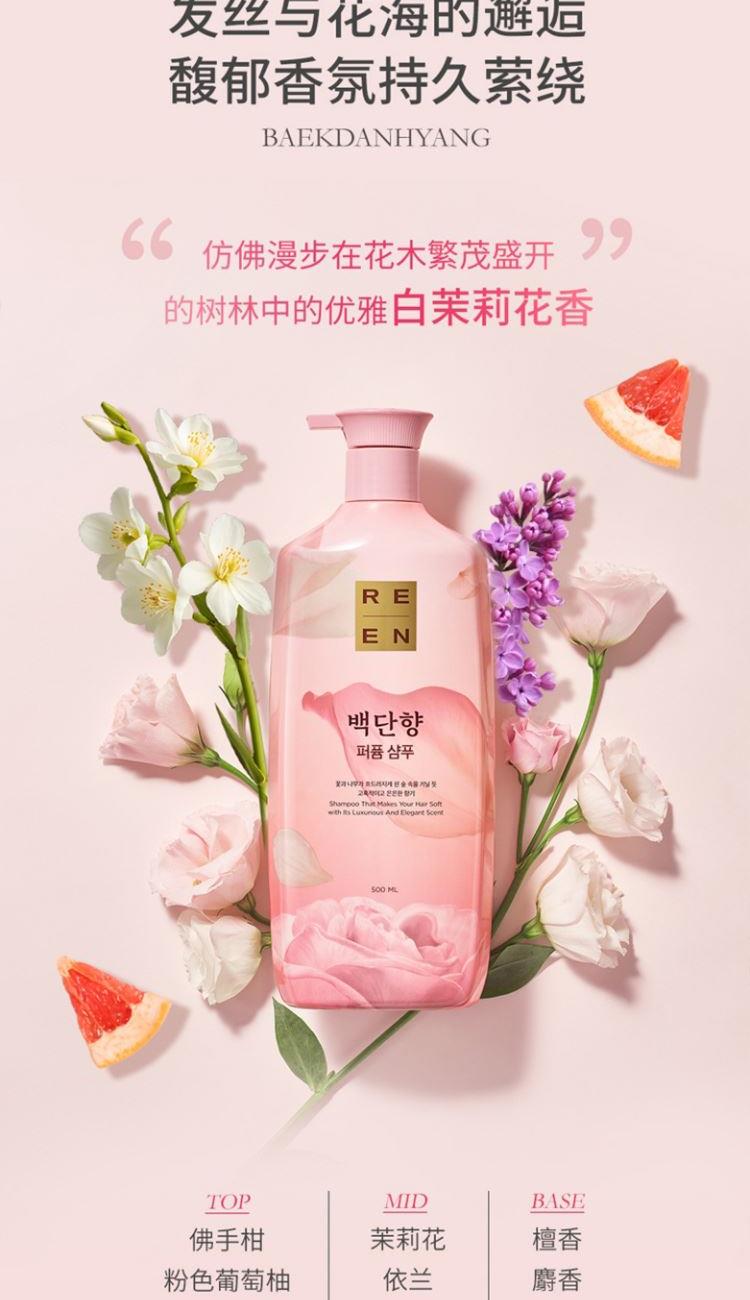 赋予东方神韵的山茶的营养,塑造迷人秀发,散发清新雅致的白檀香香气,水润盈亮秀发 通过LG生活健康香精研究的不懈努力,利用香乳化技术,加强香味的持久性,使得花香萦绕发间。 产品功效:强韧发根 呵护烫发 葆受损发质 头皮清爽。 包装设计:采用的是:按压式的设计,方便取量,避免浪费,而且他还设计一个扣锁,可以避免漏出。