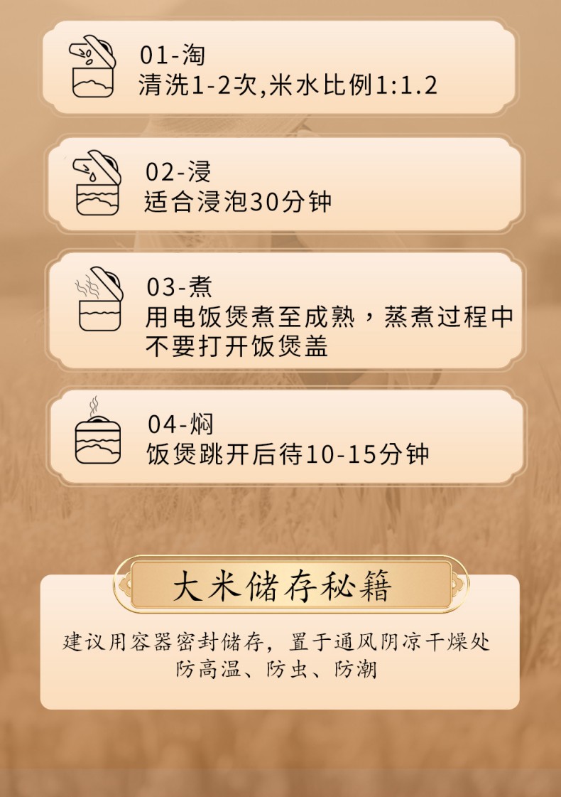 规格:1公斤 产品标准代号:GB/T 19266 质量等级:优质一等 米种:原粮稻花香7号 保质期:12个月 尺寸:175*45*240mm 原稻花香7号,湿地种植,甄选稻种,营养丰富,颗粒饱满,米粒均匀,醇厚绵长,芳香四溢,享誉中国,五常源产,来自“稻米之乡之一”的黑龙江。 外观:粒长饱满,晶莹油亮。 口感:米香浓郁,软糯弹牙,甜润回甘 。