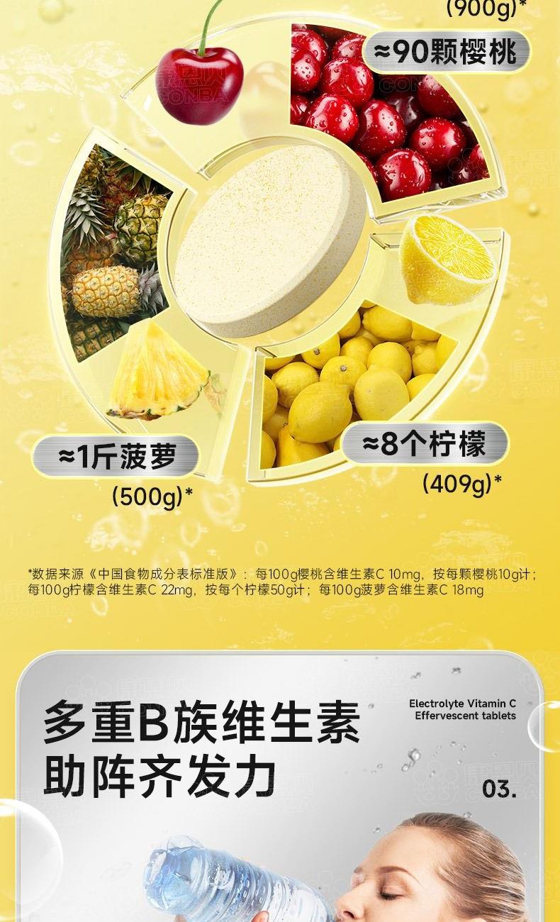 20片*3 菠萝味 电解质含量≥229mg/片 特别添加多种维生素B族:B1、B2、B6 0添加蔗糖活力轻负担