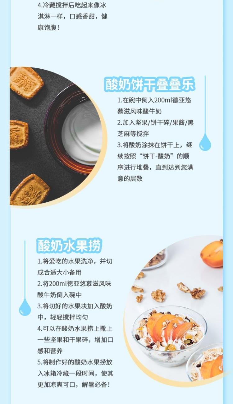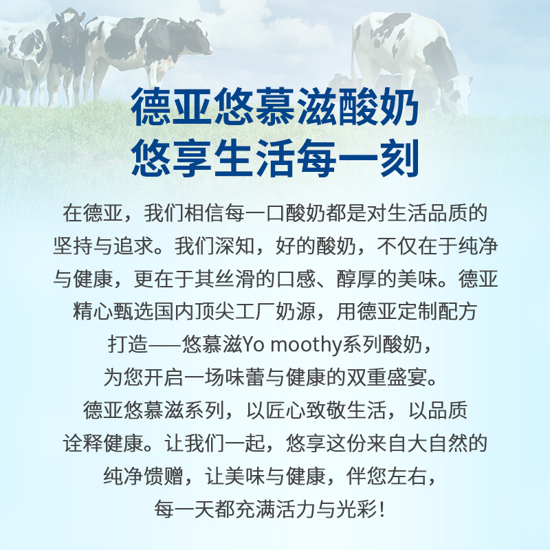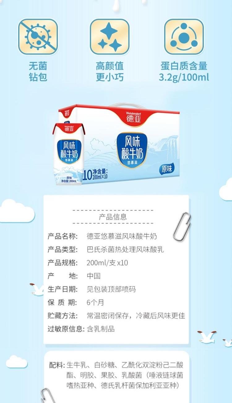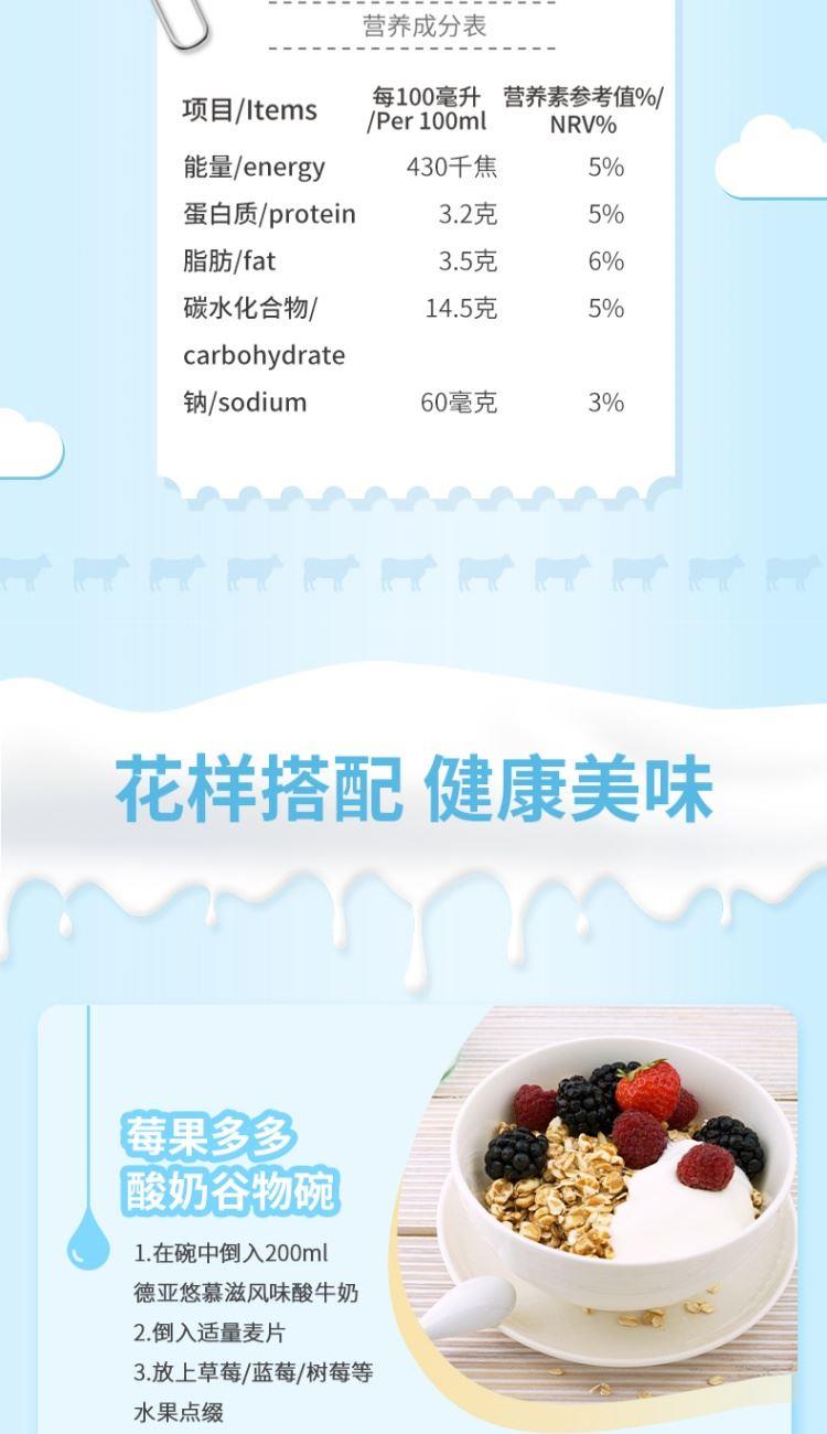 产品:德亚悠慕滋风味酸牛奶 产品规格:200ml/支x10 保质期:6个月