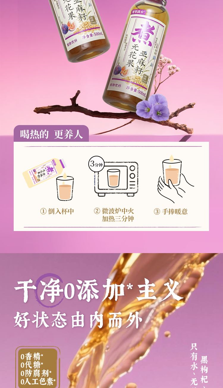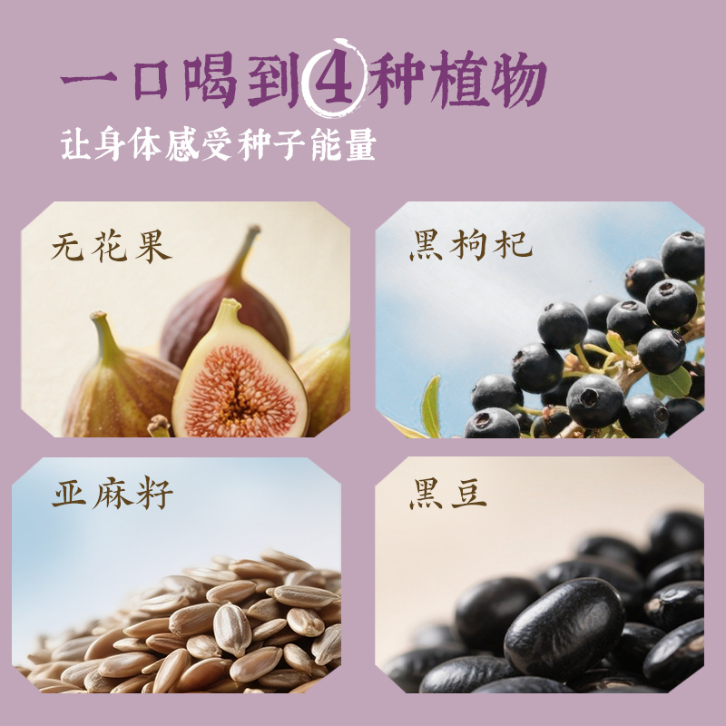 ✅ 0糖0脂0卡,喝出身体轻盈呼吸感! ✅ 一口喝到4种植物🌿,让身体感受种子能量 ✅ 山东威海无花果X 内蒙古赤峰亚麻籽 X 黑枸杞X 黑豆 ✅ 植物萃取,匠心熬煮🍹,天然清甜甘润,冷热皆宜