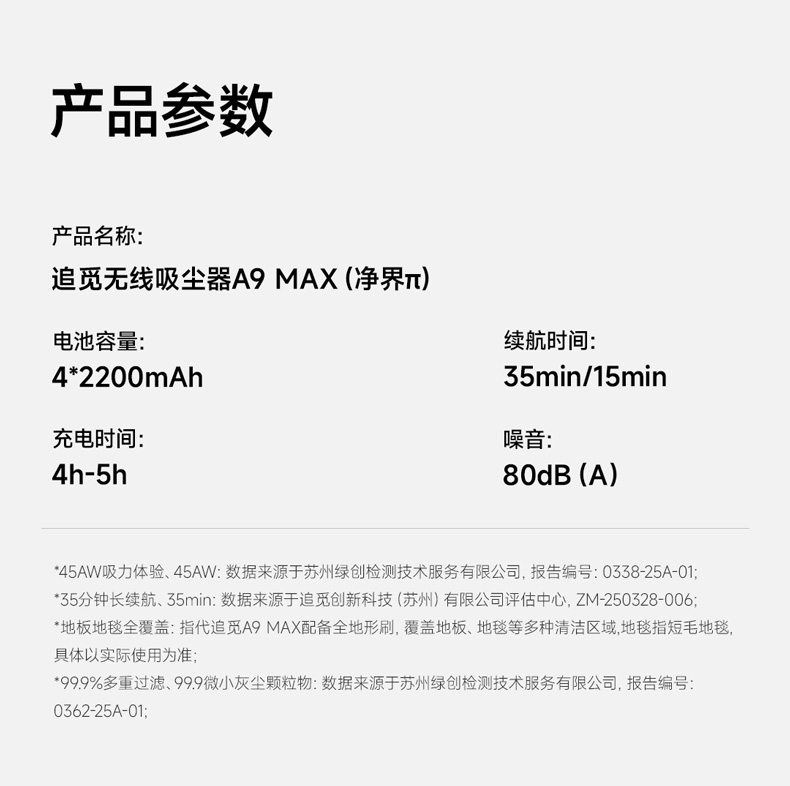 真空度18kpa 吸力45AW 功能参数 低噪音80dB 吸头数量2个