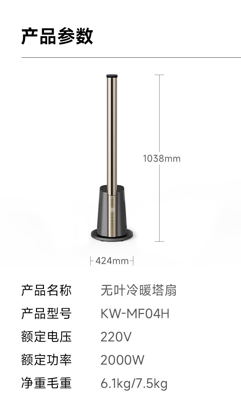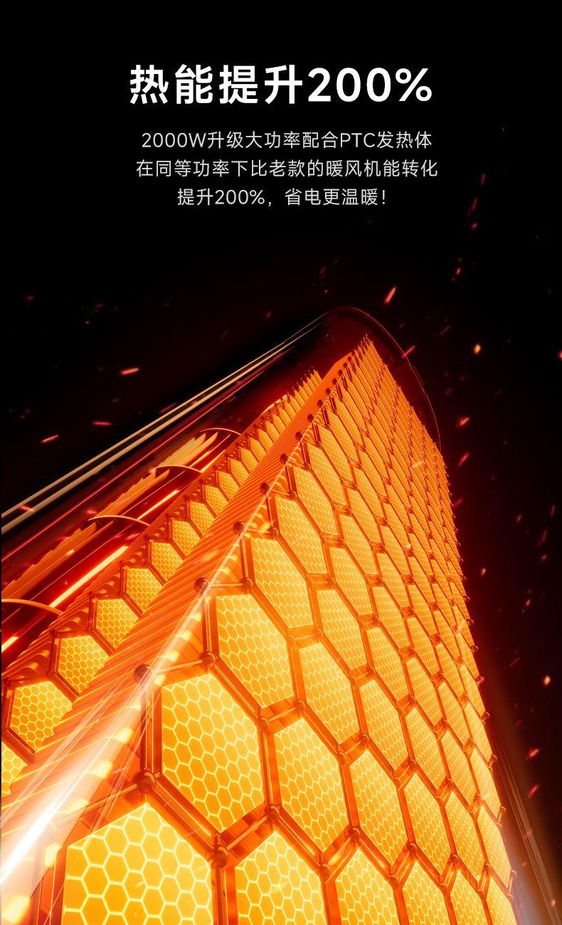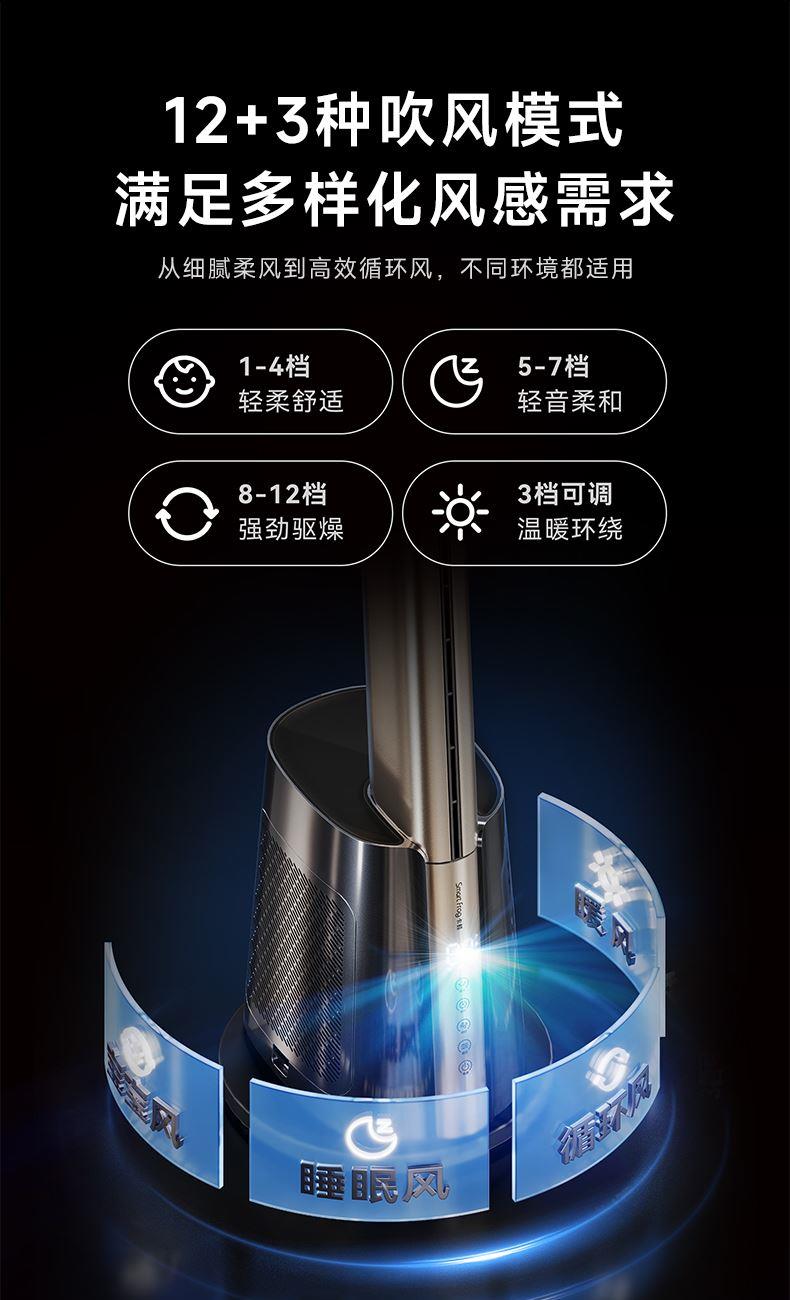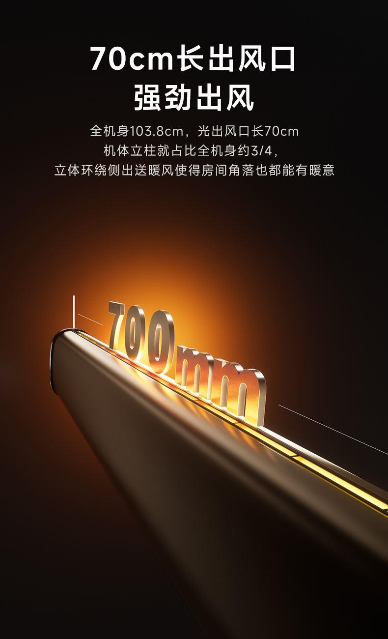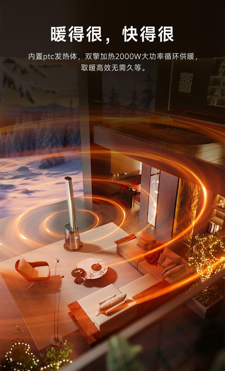 自研蜗壳风道 高转速直流电机,高速低噪出风 冷暖双效,AI智能芯片 ECO模式下达到至佳节能效果 首创70CM宽幅出风口 包裹式出风,全身感受 2000W大功率 高效循环供暖 大角度广域送风 快速盘活屋内空气 纳米级过滤 1000+颗活性碳粒,ACG高密度过滤网 12+3种模式 从轻柔舒适到强劲驱燥 12H长效定时 轻音运行不扰人