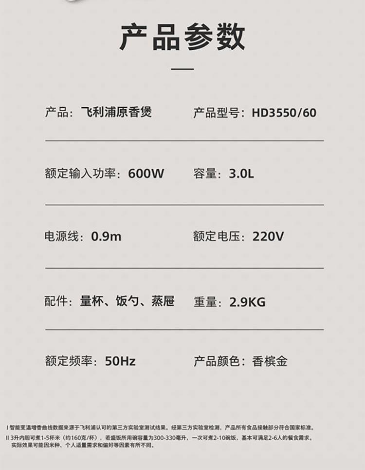 飞利浦电饭煲智能预约多功能3L家用HD35503L