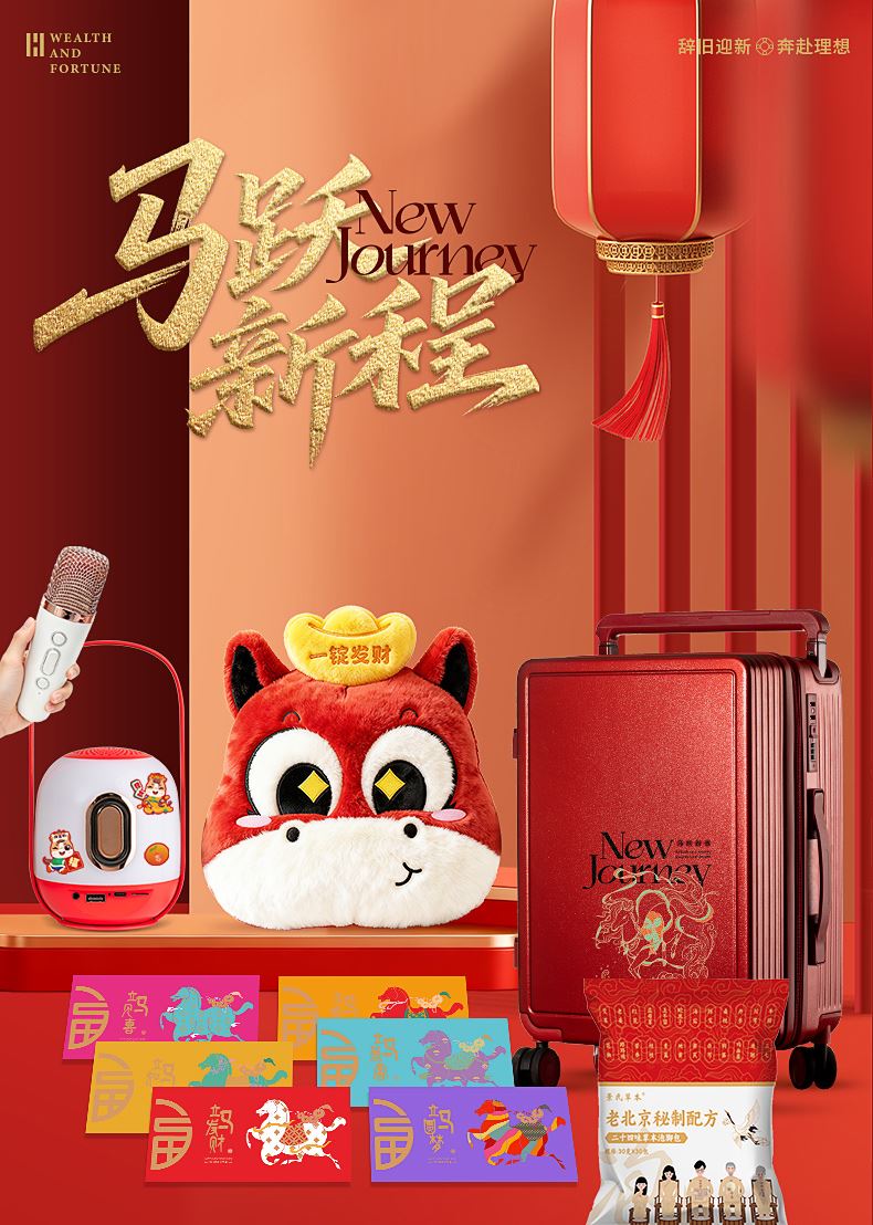 勿一马跃星程D红色行李箱新年礼盒套装商务伴手礼