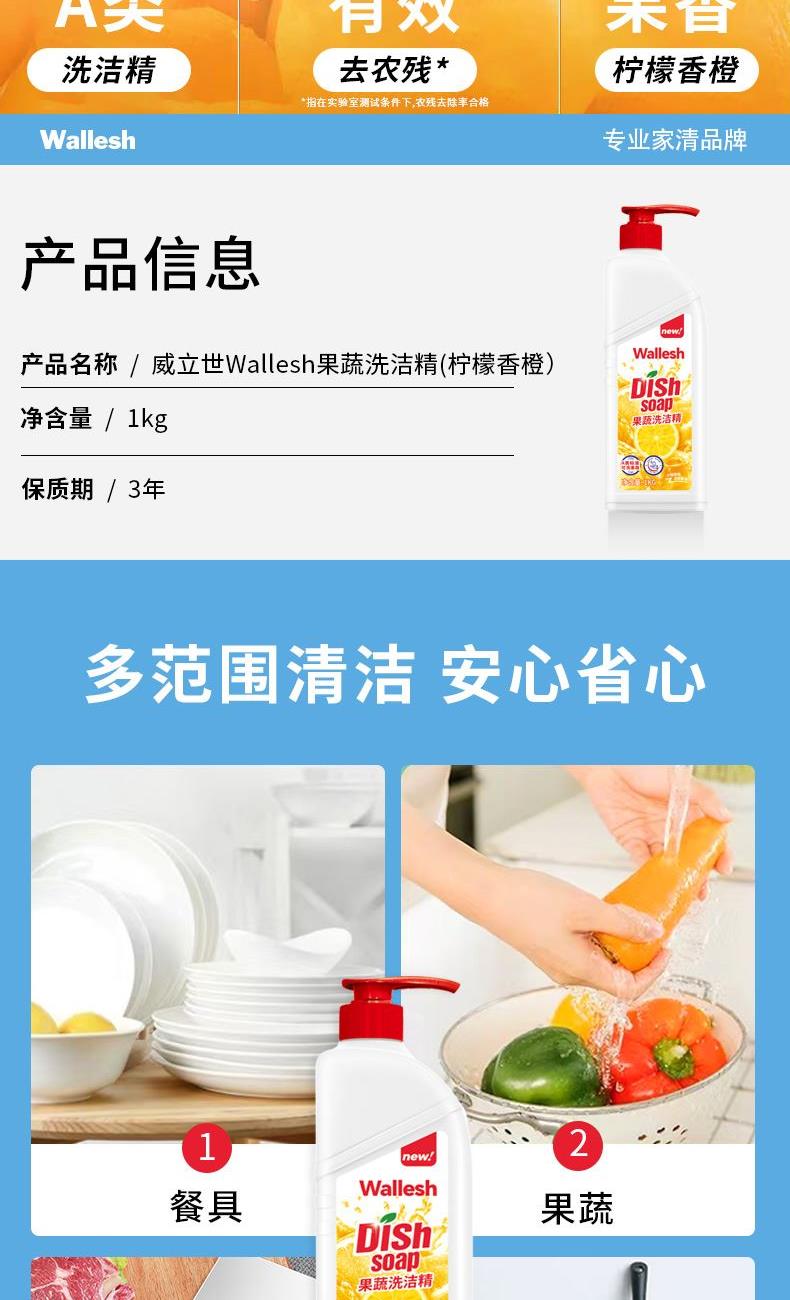 威立世Wallesh果蔬洗洁精(柠檬香橙)1kg