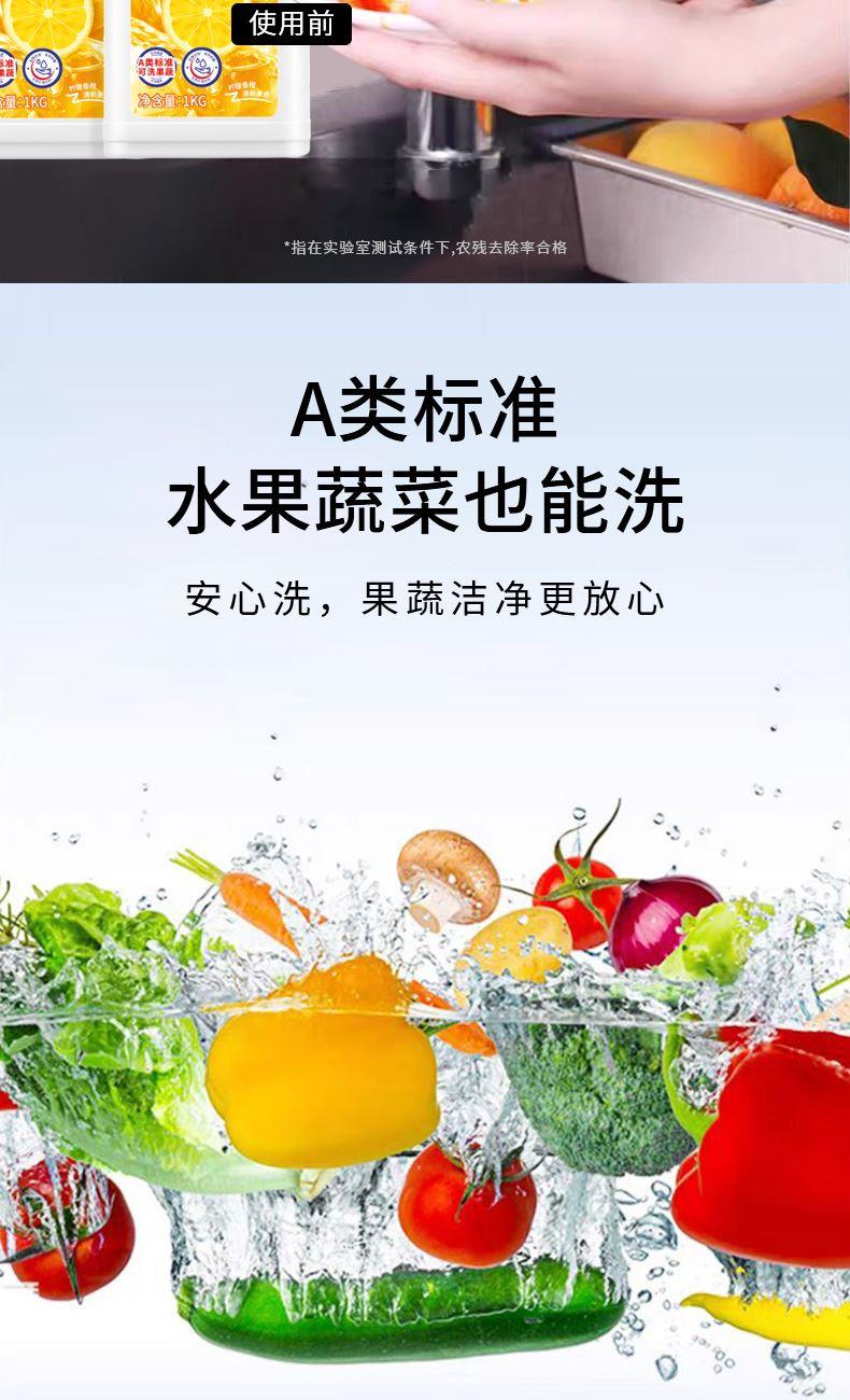 特点:A类食品级标准,可洗水果蔬菜、强力去油去农残 ※A类食品级标准,可洗水果蔬菜,安全放心。有效去除农残,安全可靠。 ※餐具洁净轻松。有效去除果蔬农残,16.4%6总有效物含量强力去油污柠檬香橙清新果香,厨房散发清新香味 ※无砷,无甲醇、无二嚟烷、无荧光增白剂、PH值中性温和更安心。应用场景:可洗果蔬、餐具、厨具、砧板、刀具等