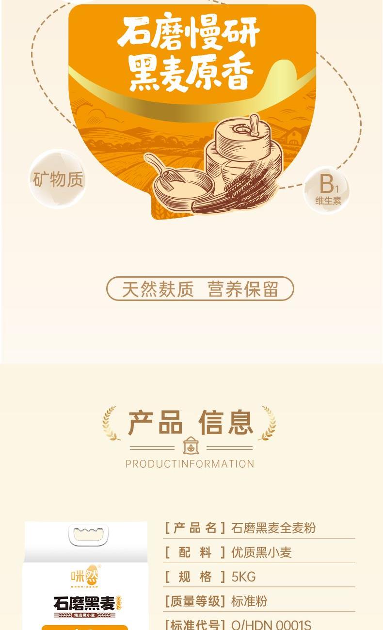 产 品 : 咪然石墨黑麦全麦面5kg 执行标准 : Q/HDN 0001S 保 质 期 :6个月 产 地 : 河南濮阳 箱 规 :10*2.5kg