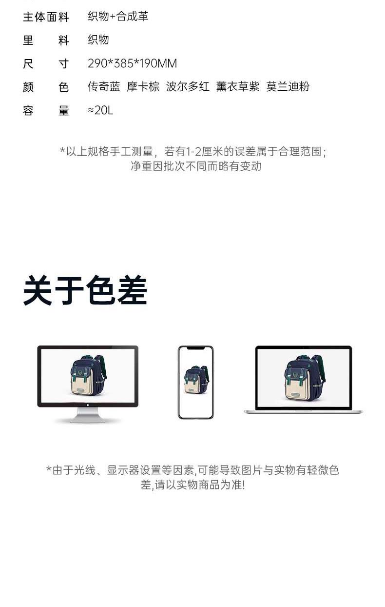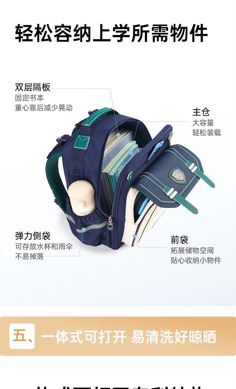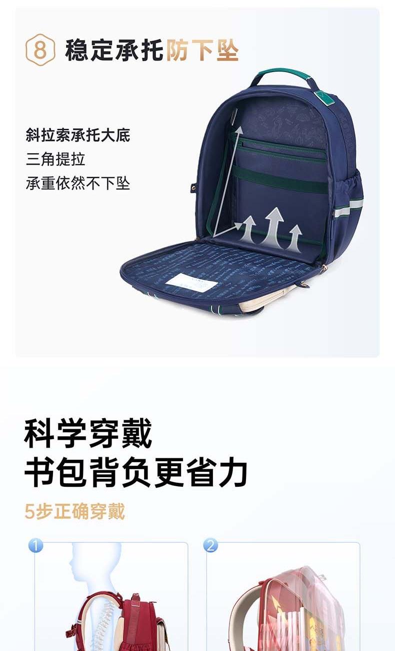 货号:CX2792 主体面料:织物+合成革;里料:织物 颜色:新传奇蓝 定位: 135CM以上/小学高年级功能书包 净重:0.92kg 20L