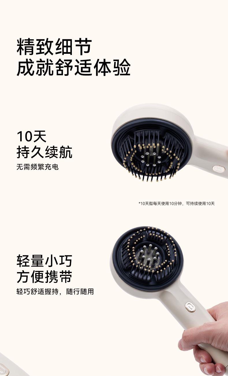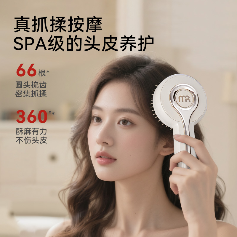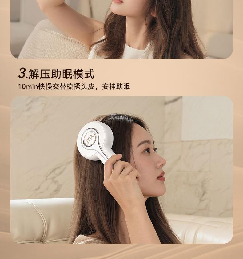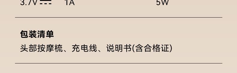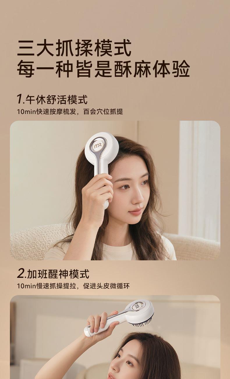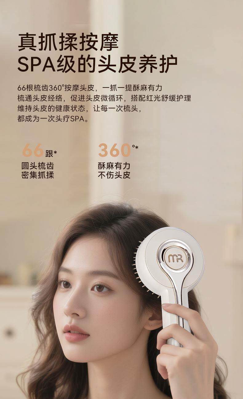 69码 6975660321281(按摩梳)、6977576670699 (保温杯) 型号 MR3128TB1120-9 产地 浙江温州(按摩梳) 浙江杭州(保温杯) 净重 250g(按摩梳)160g(保温杯) 毛重 905g 包装尺寸 21.5X25.5X7cm(彩盒) 大箱尺寸 42*48*55cm 续航:约12个循环(开机默认模式) 充电时间:≈120min 按摩梳材质:ABS+PP+硅胶、保温杯材质: 覆钛 按摩梳工作功率:10W 按摩梳充电接口:Type-C 按摩梳电池容量:1400毫安 按摩梳配件:主机,充电线,收纳袋,说明书 执行标准:GB4706.1-2005/GB4706.10-2008 卖点: 摩飞头皮按摩梳MR3128 “真抓揉”开穴舒筋,解压助眠 红光光波理疗,呵护头皮 圆润梳齿,按摩不伤头皮,蓬松顺发 边梳边导液,营养直达头皮,高效吸收 大容量长续航,可使用约10天 流线型握把,轻巧易握,小巧收纳 瑞士军工琉森水波口袋杯TB1120-9 钛晶技术380℃以上高温锤炼145道匠心工序 覆纯钛内胆,无惧酸碱腐蚀,保鲜保味 表面仿钛晶工艺,0重金属健康环保 长效锁温,6-12小时保温保冷 200ml口袋尺寸,小巧便携,易携带
