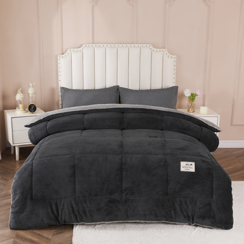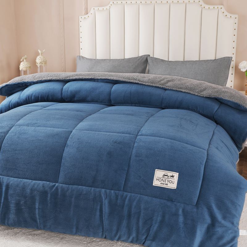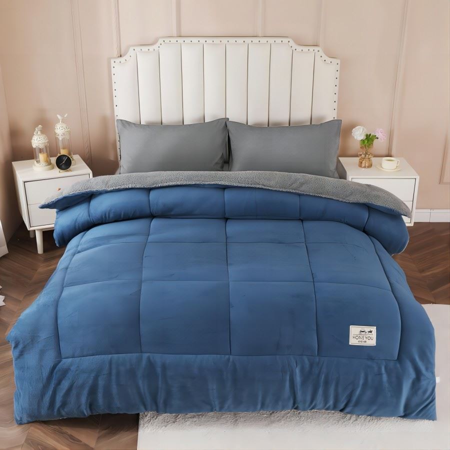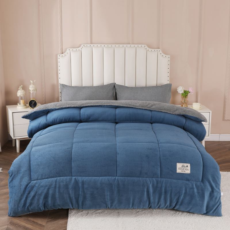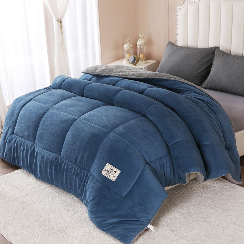 花花公子-家纺-牛奶绒+羊羔绒雪花绒冬被被芯暖心被