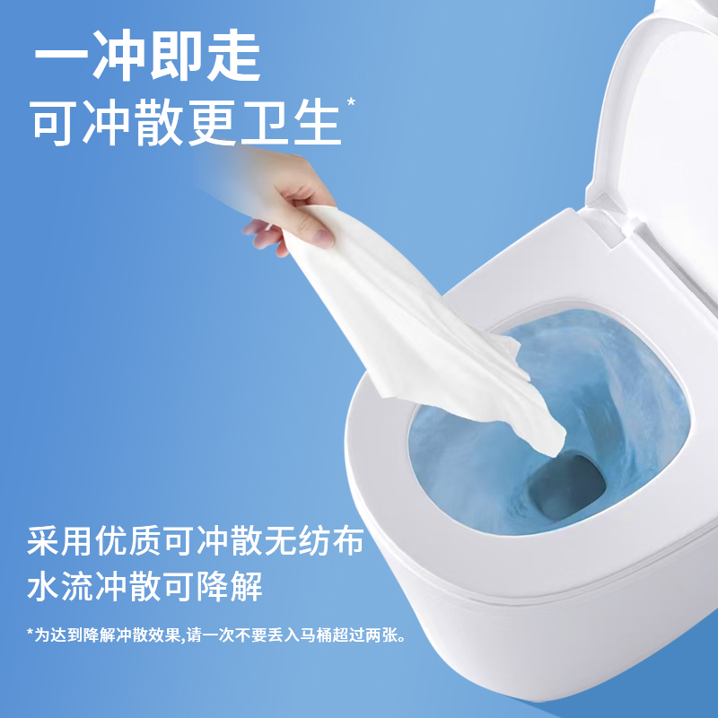 产品特点:超柔加厚无纺布不易破,卫生洁净,优质可冲散;富含芦荟精华,温和呵护肌肤,擦拭后清爽舒适