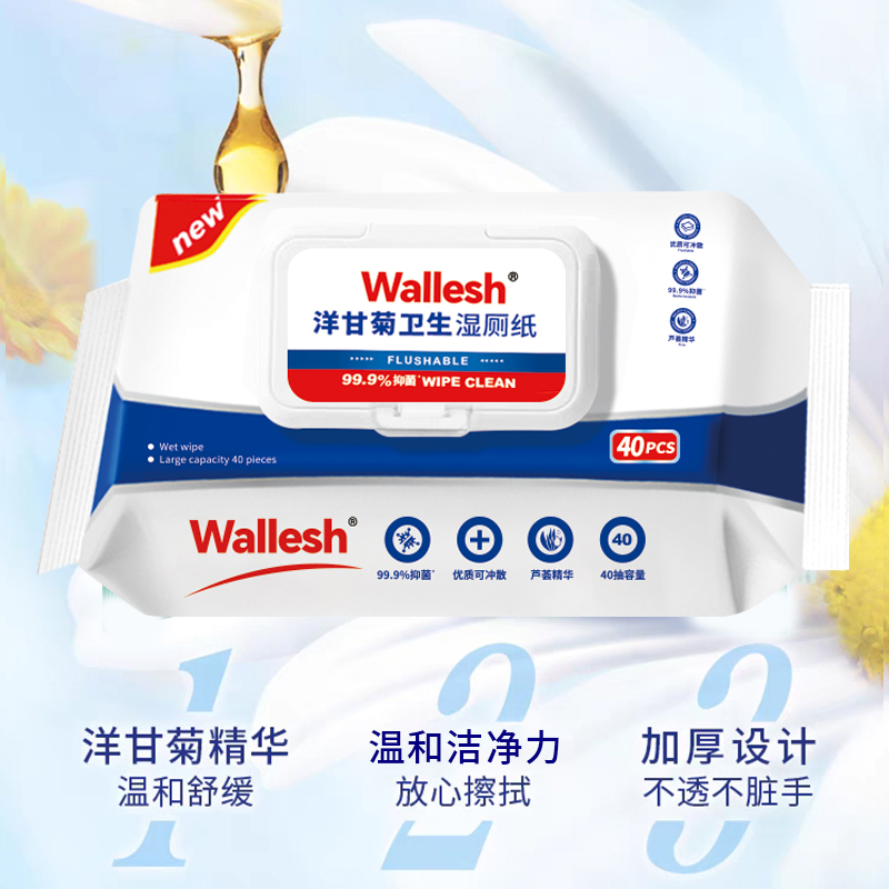 威立世(wallesh)洋甘菊卫生湿厕纸40抽