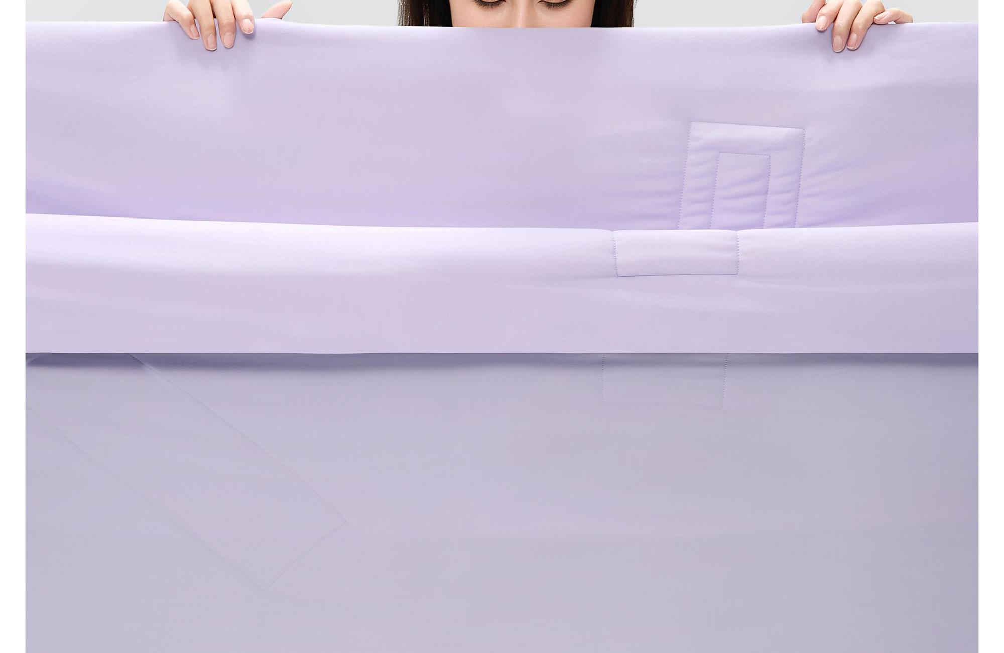 产品规格:150*200cm、200*210cm 产品净重:1.18kg、1.63kg 外箱毛重:1.3kg、1.74kg 外箱尺寸:420*320*160mm 产品颜色:莫奈紫/水波绿 1、冰凉锦氨面料,肤微凉更入眠:肤感清凉透气降温快——自适应清凉体温面料 2、透气硅胶填充,柔软透气兼顾:透气散热排湿不闷汗一一床垫的透气缓冲隔层 3、放心洗不变形 锦纶交织氨纶:弹性氨纶久洗不变形 内衣级锦氨柔性面料 食品级硅胶粒:无异味可水洗清洁性 环保材料填充