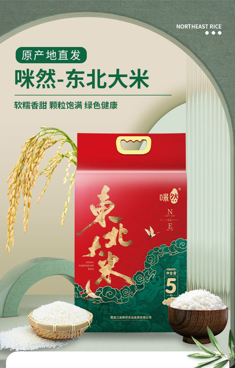 产 品 : 咪然东北大米5KG 执行标准 : GB/T 1354 保 质 期 :12个月 产 地 :辽宁锦州 箱 规 :4*5kg