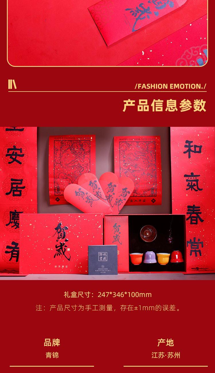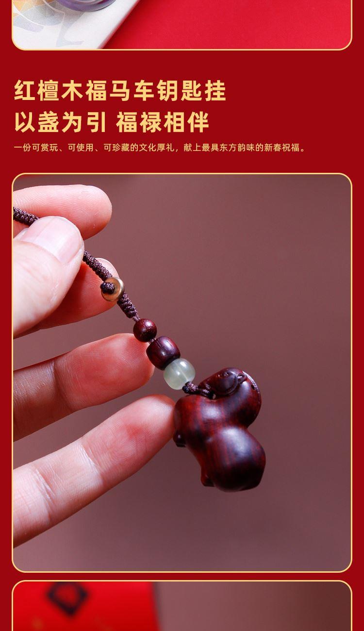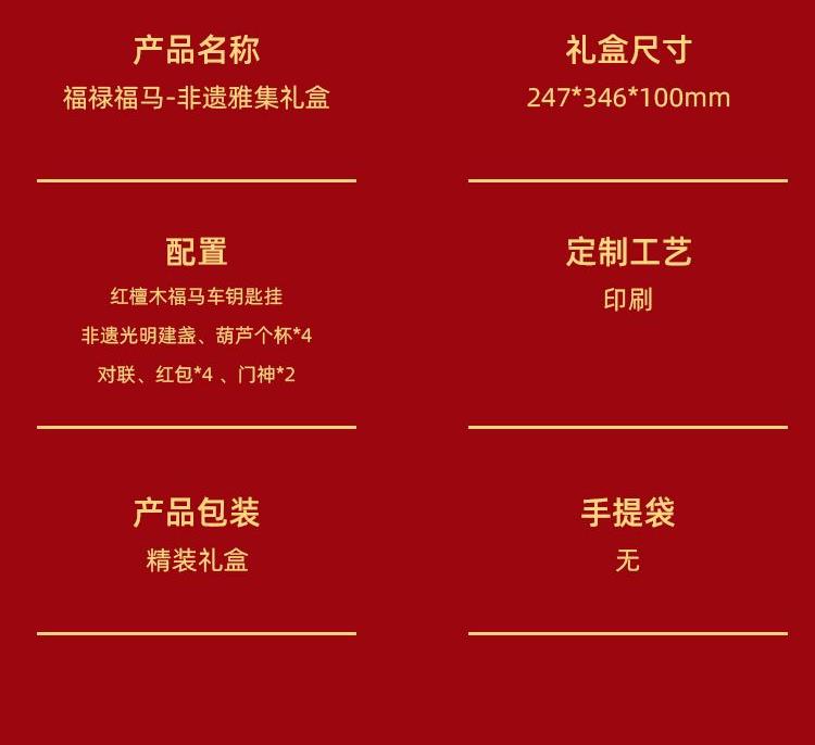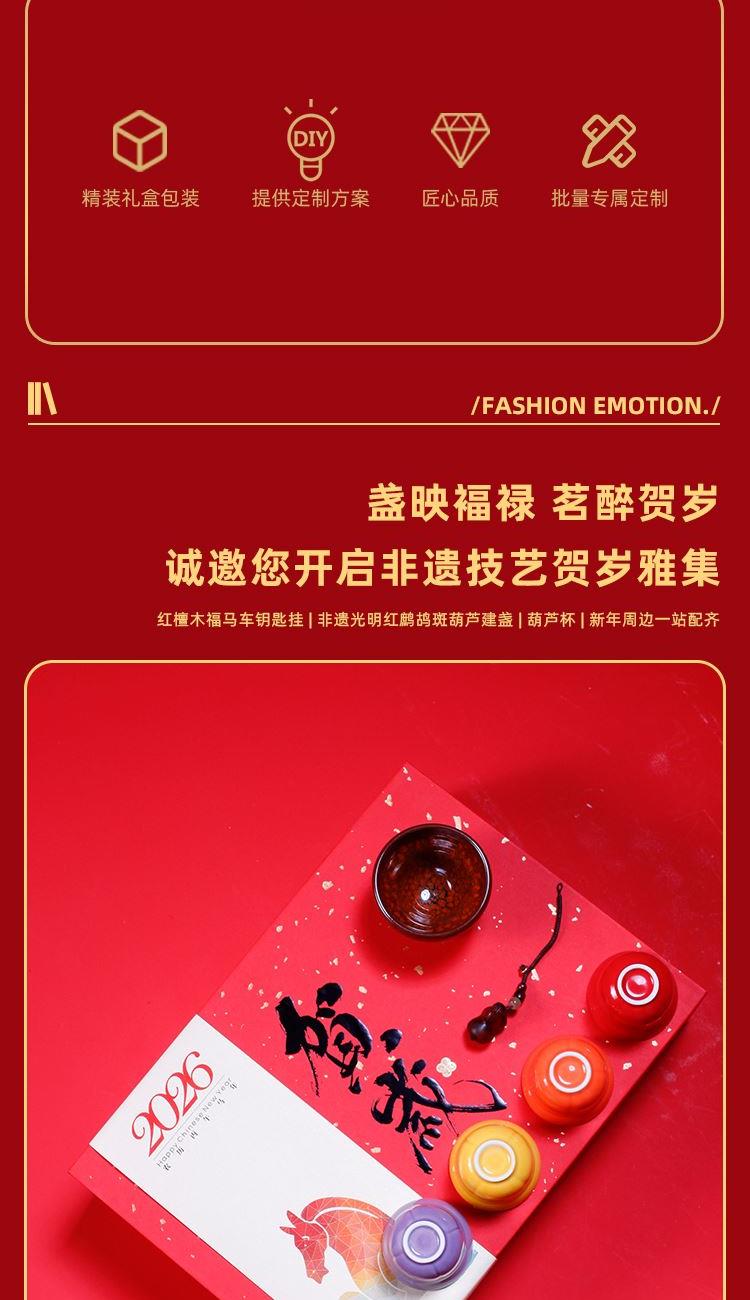红檀木福马车钥匙挂x1 非遗光明红鹧鸪斑葫芦建盏x1 葫芦个杯x4色(颜色可以选) 对联*1-红包*4 门神*2 精装礼盒手提袋*1