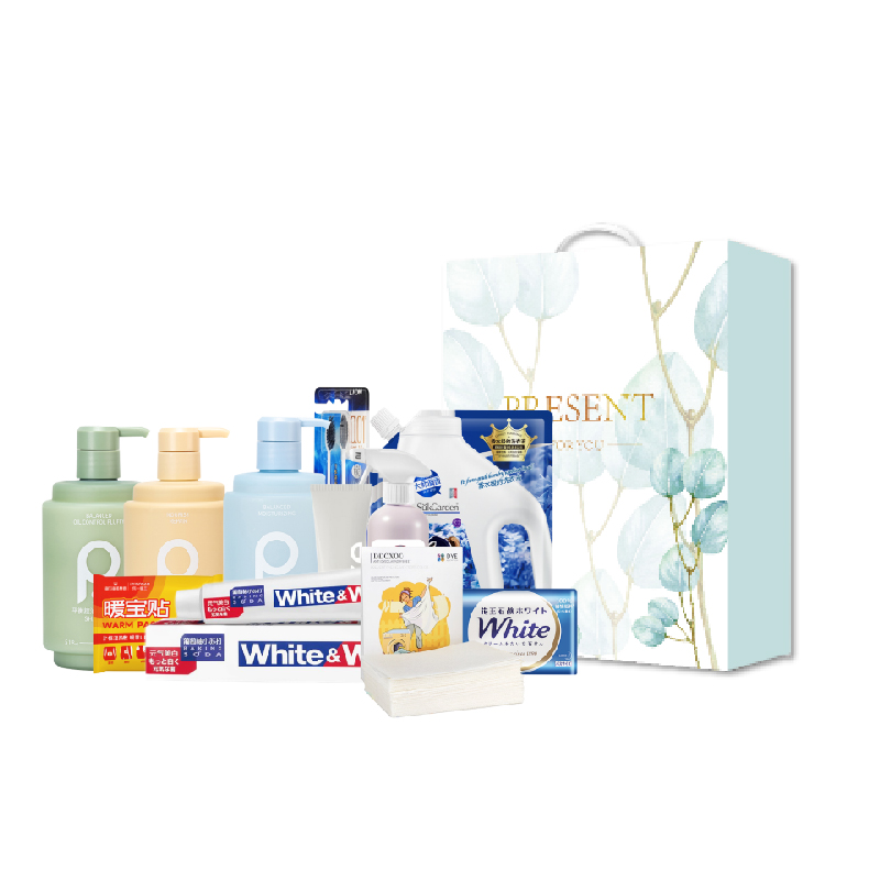 【套装配置】(香型随机/新老包装随机) 1.柏缇平衡控油蓬松洗发露518ml*1 2.柏缇芯源臻护护发素护发素518ml*1 3.柏缇平衡水润沐浴露518ml*1 4.柏缇盈润护手霜50g*1 5.蔬果园蓝风铃深层洁净柔顺洗衣液500g*1 6.美国进口DDOXOO防串色片40片/盒*1 7.唐茜多彩花果香油污净500ml*1 8.海氏海诺恒温热敷暖宝贴10贴/袋*1 9.花王天然植物护肤香皂130g*1 10.狮王细齿洁弹护龈牙刷2支装*1 11.狮王葡萄柚小苏打元气美白牙膏120g*1 12.繁花系列精美彩盒*1(23*14.5*30cm) 赠:礼遇美好暖冬限定盲盒(随机)*1