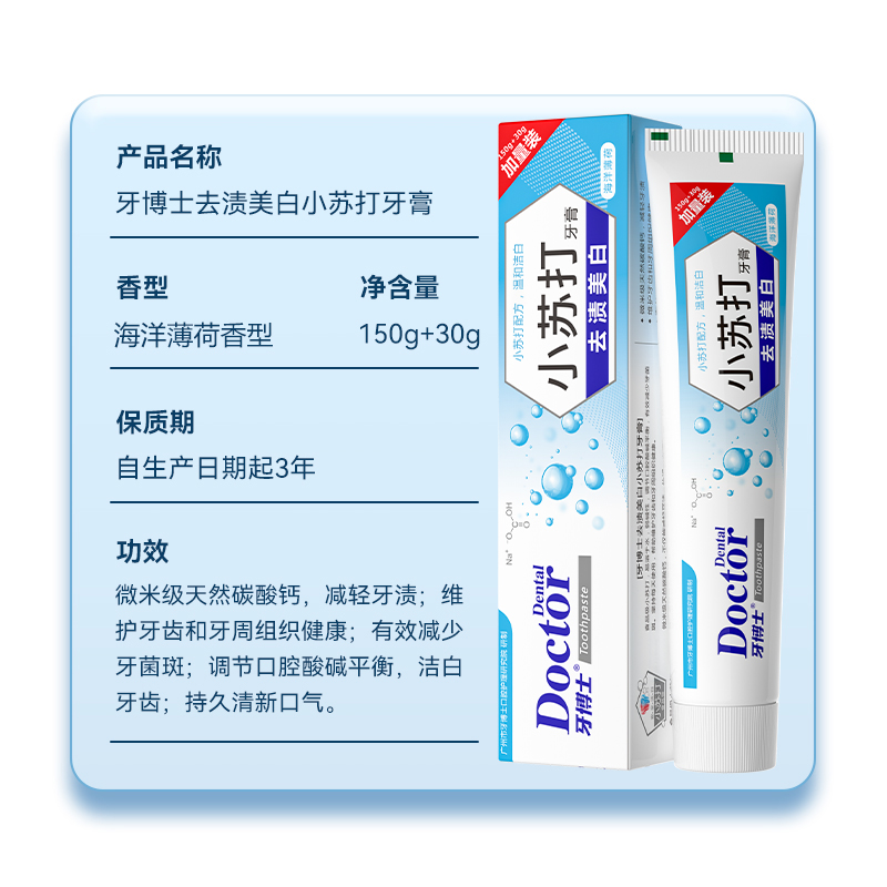 牙博士去渍美白小苏打牙膏150+30g