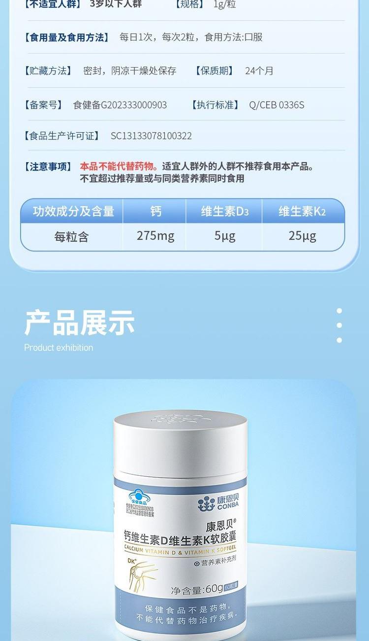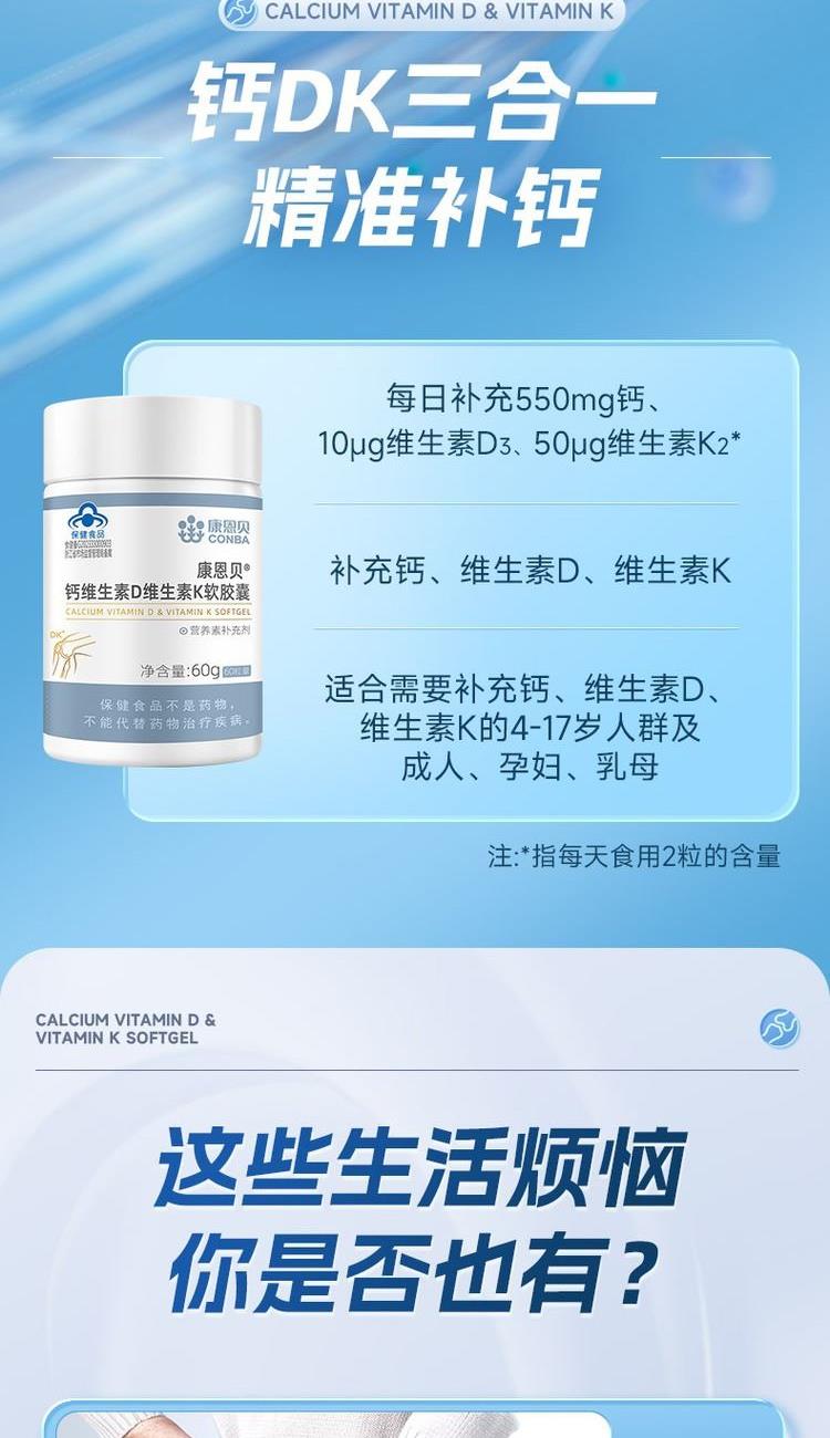 康恩贝钙维生素D维生素K软胶囊