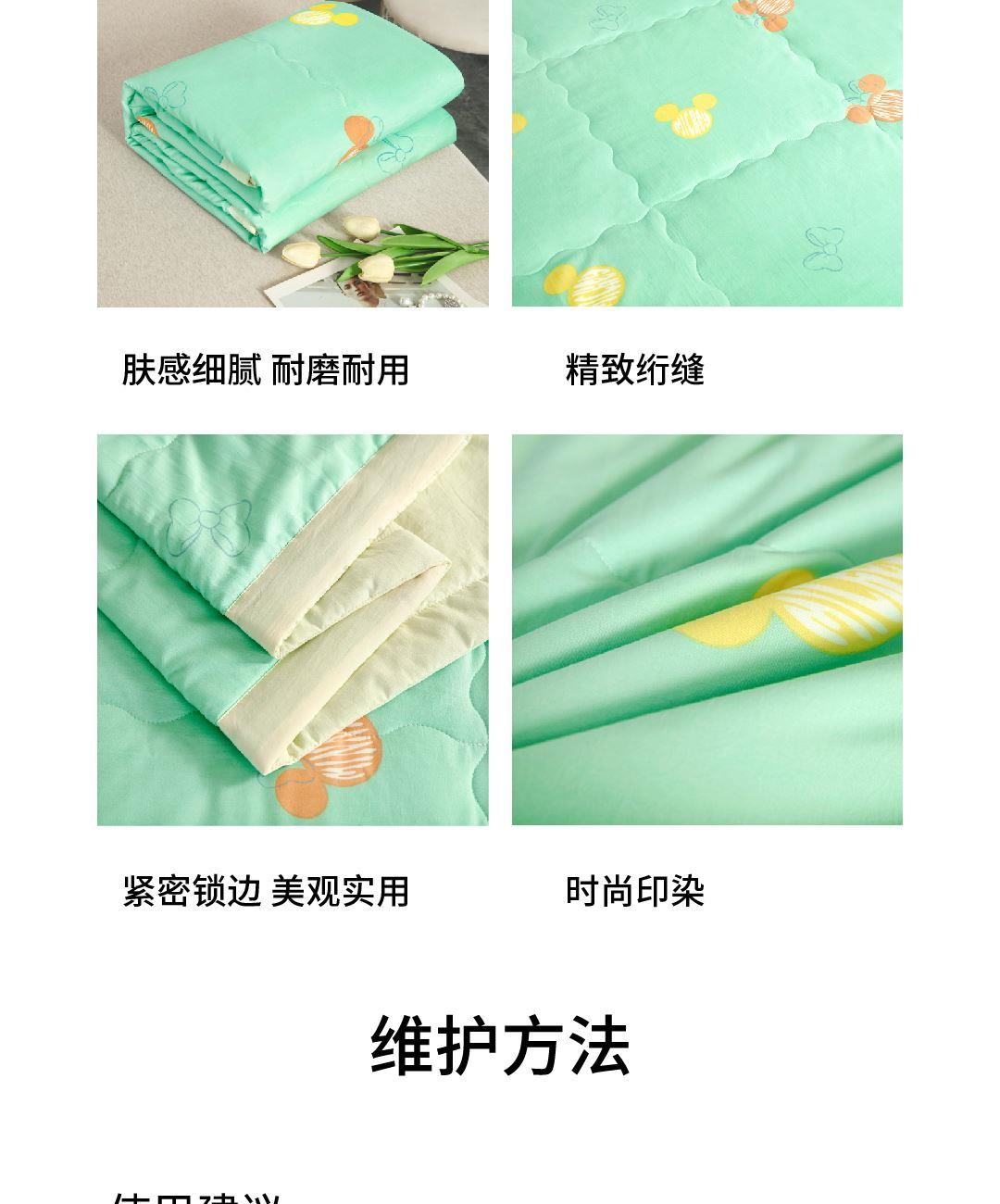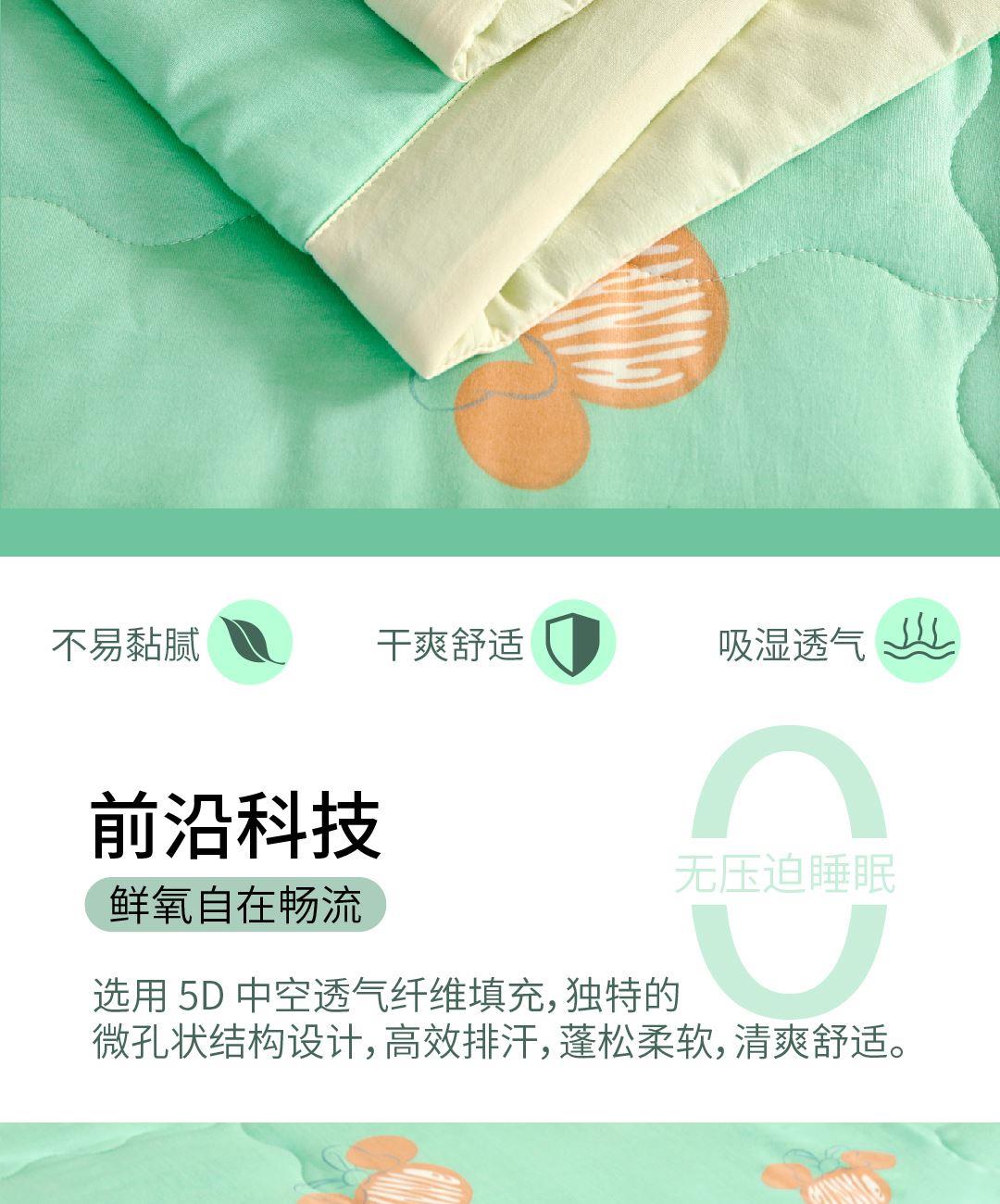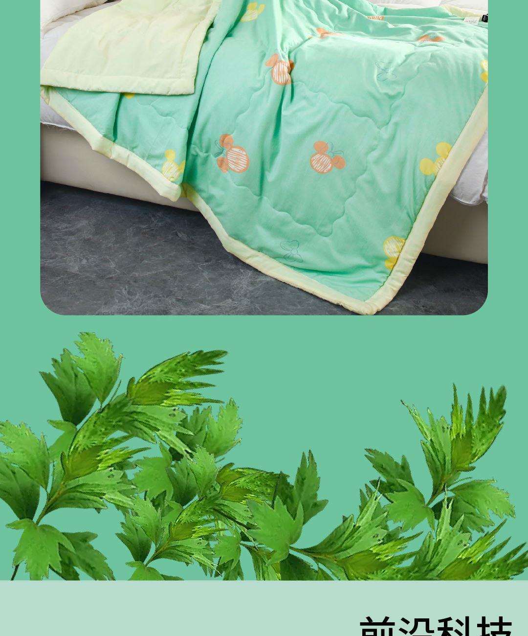 规 格:150x200cm(±3cm) 面 料: 水洗棉(聚酯纤维) 填 充:艾草透气纤维(聚酯纤维) 采用前沿科技,将富含艾草素的纳米微胶囊巧妙地注入纤维之中。艾草天然的特殊植物清香,有效助眠,预防蚊虫叮咬, 选用 5D 中空透气纤维填充,独特的微孔状结构设计,高效排汗,蓬松柔软,清爽舒适。 双面均采用水洗棉面料,经过特殊水洗工艺处理,吸湿透气性强,亲肤柔软,带来舒适体验。 秉持环保印染理念,产品通过 A 类检测认证,无荧光剂、无甲醛残留,真正做到安全放心。