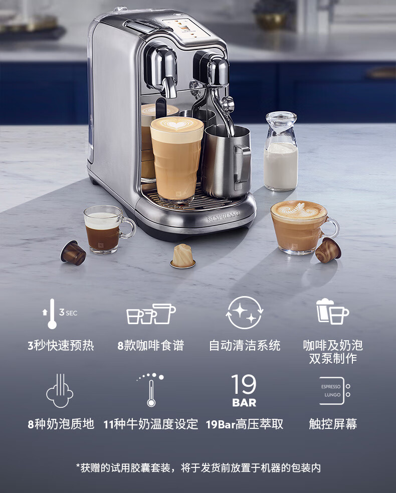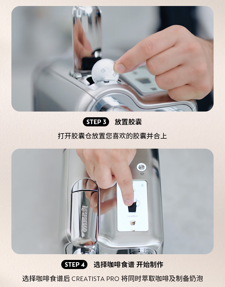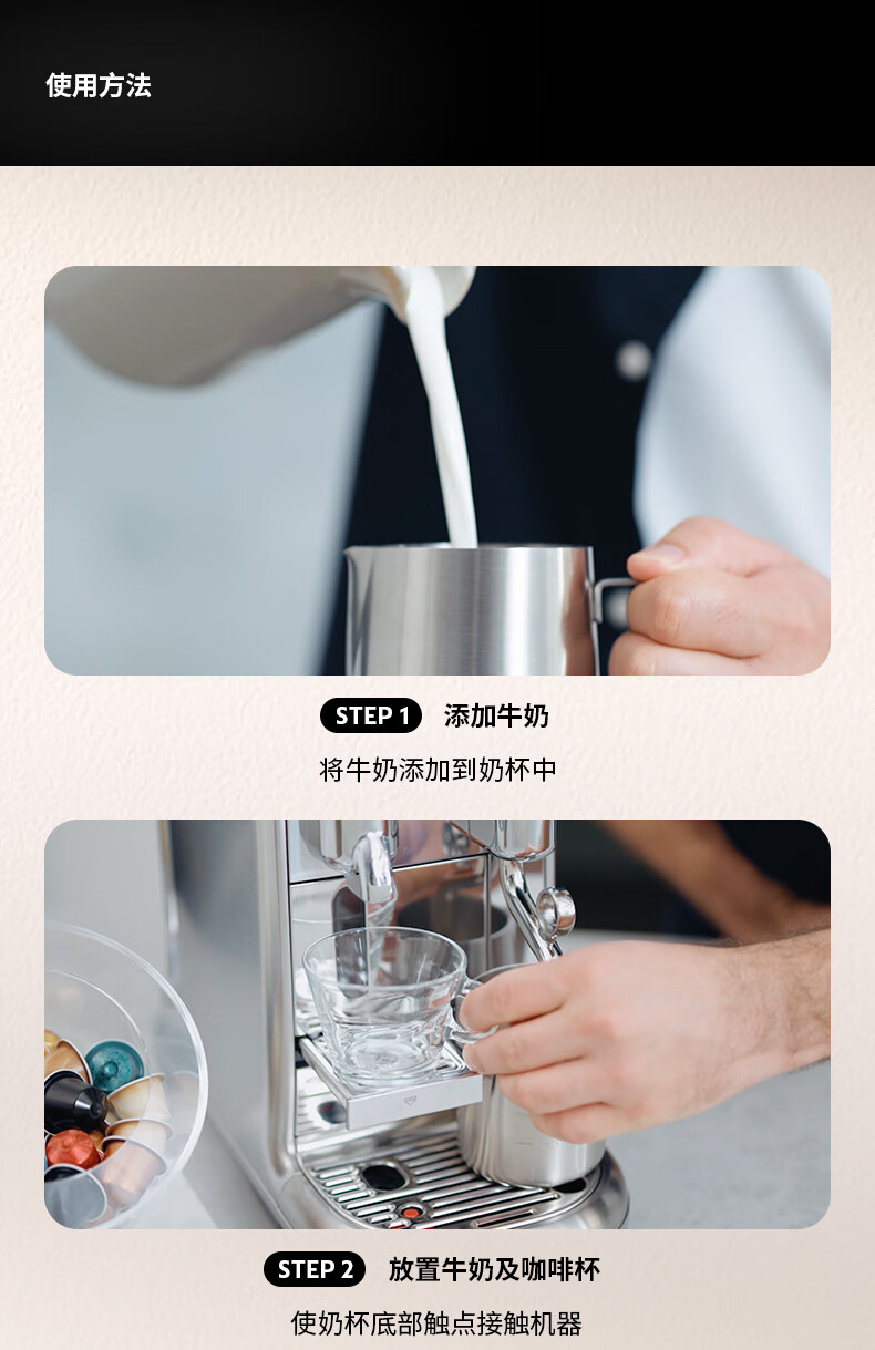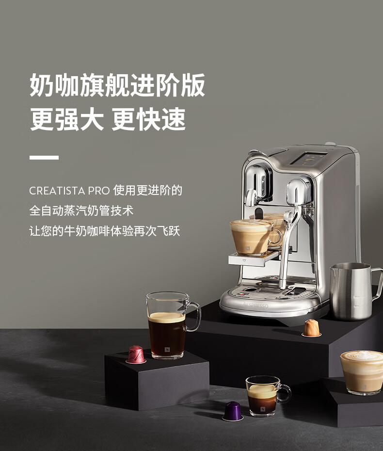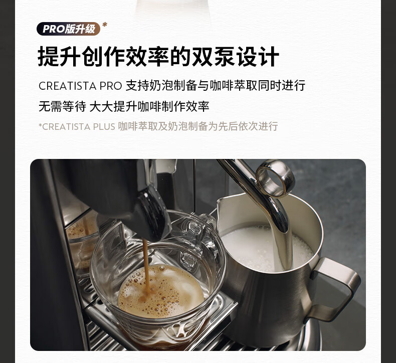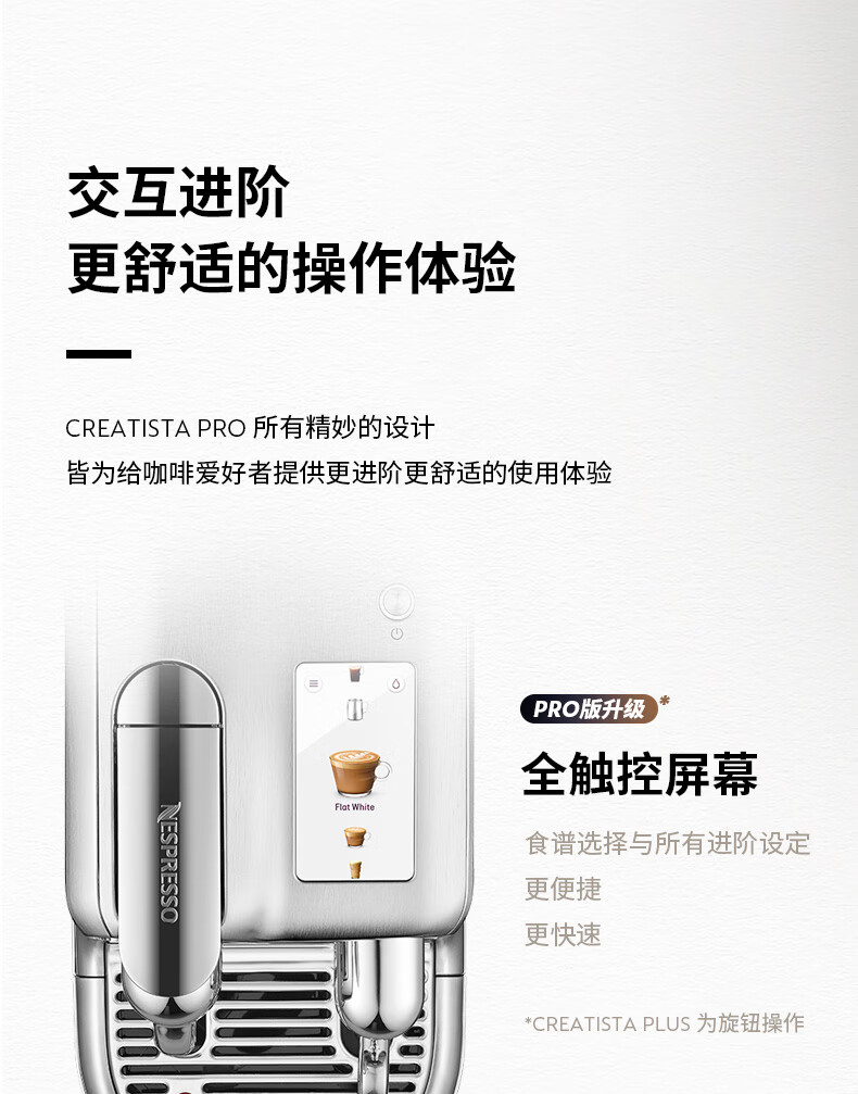 型号:J620 电源线长:1.2m 额定电压:220V 额定功率:2300W 产品尺寸:长429.4mm 宽327.5mm 高196.5mm 水箱容量:1.9L及以上 泵浦压力:19Bar 交互进阶更舒适的操作体验CREATISTAPRO所有精妙的设计皆为给咖啡爱好者提供更进阶更舒适的使用体验,全触控式屏幕,弹出式杯架,高品质奶泡无需等待。