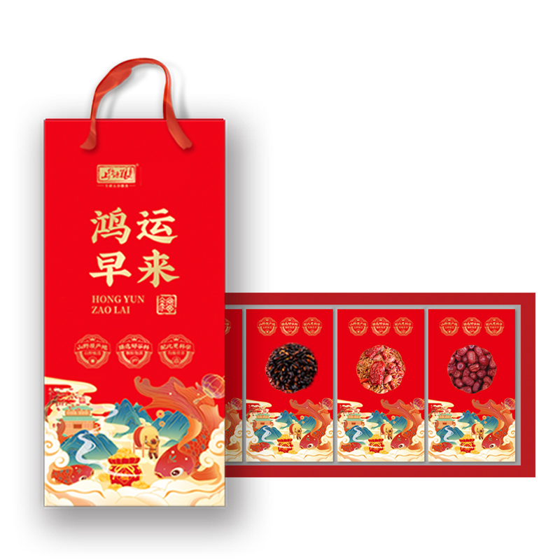 山野源粮年货礼盒鸿运早来开门红谷物杂粮红枣红豆五红粥组合礼品