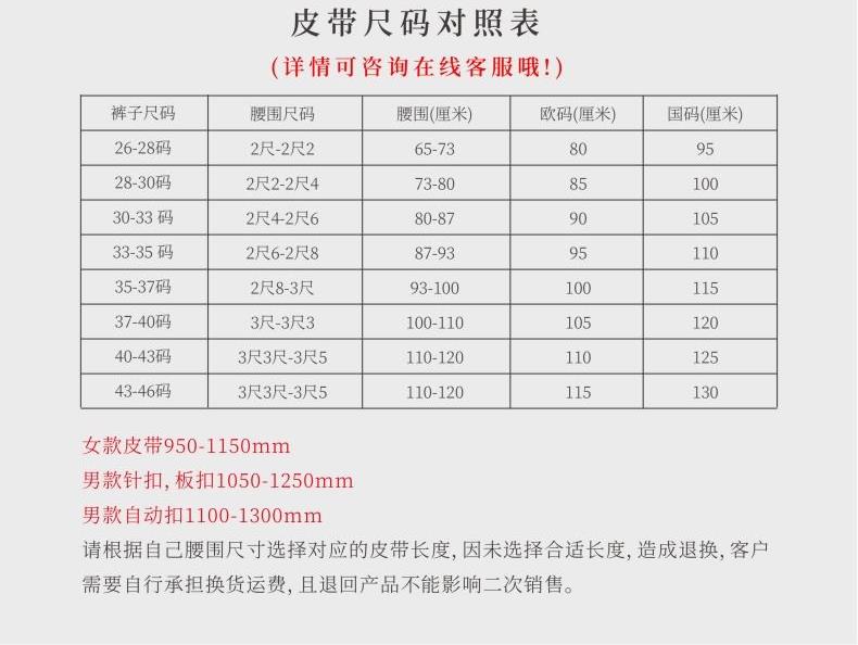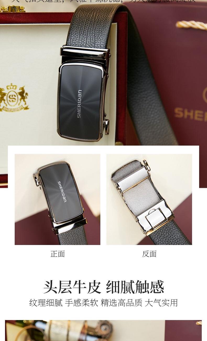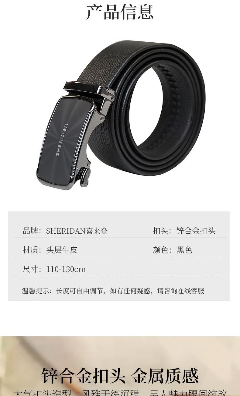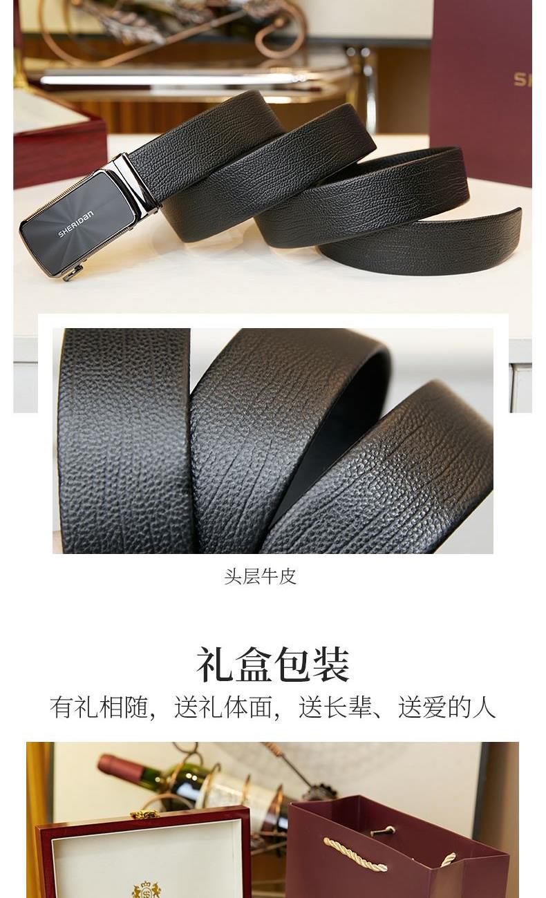 材质:头层牛皮 颜色:黑色 规格:110-130cm 精选高品质头层牛皮,纹理细腻,手感柔软; 无缝包边工艺带身, 不锈钢自动扣设计简洁大方,大气实用; 不锈钢高品质扣头,更显大气时尚。 木盒颜色批次不同有差异
