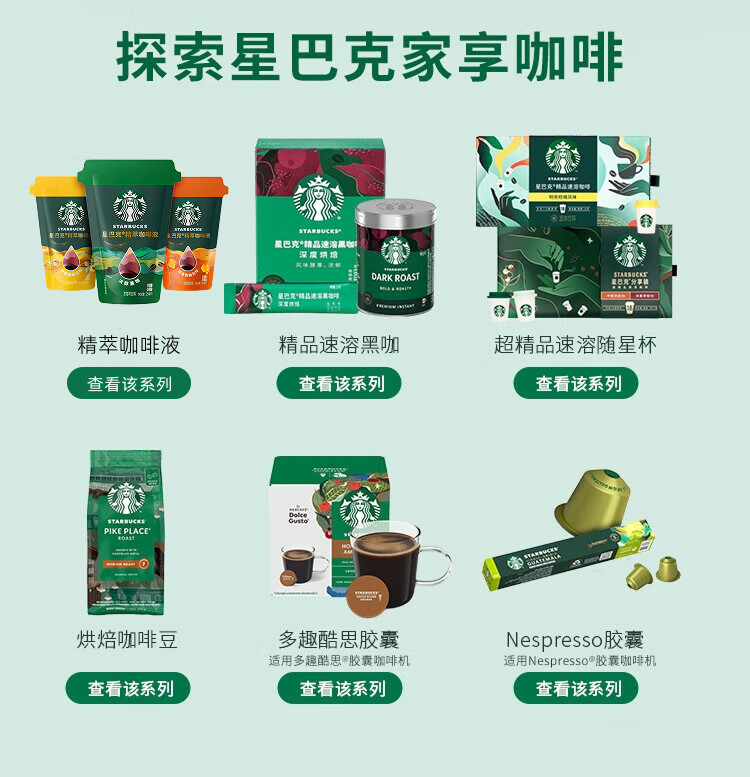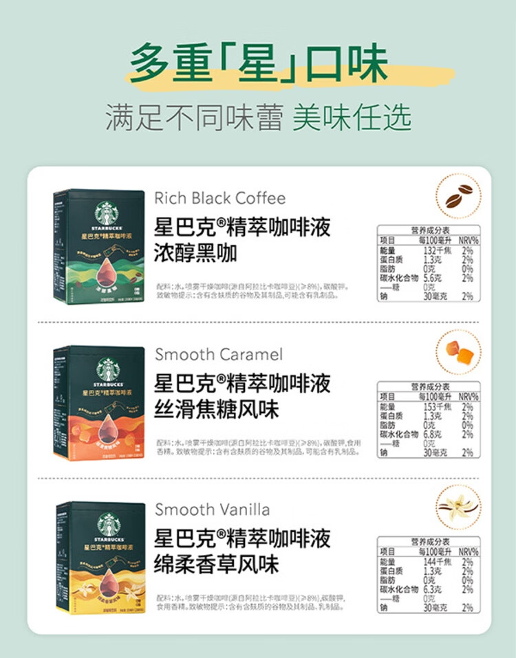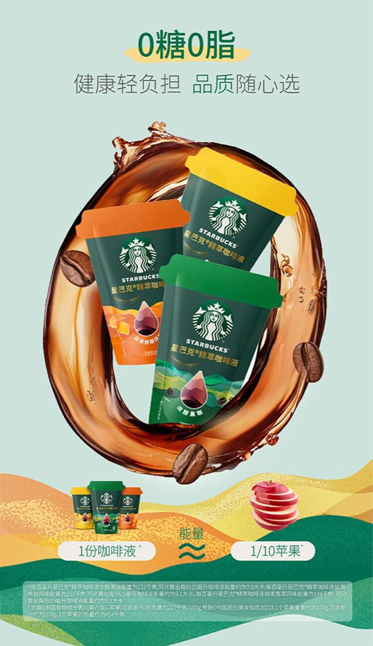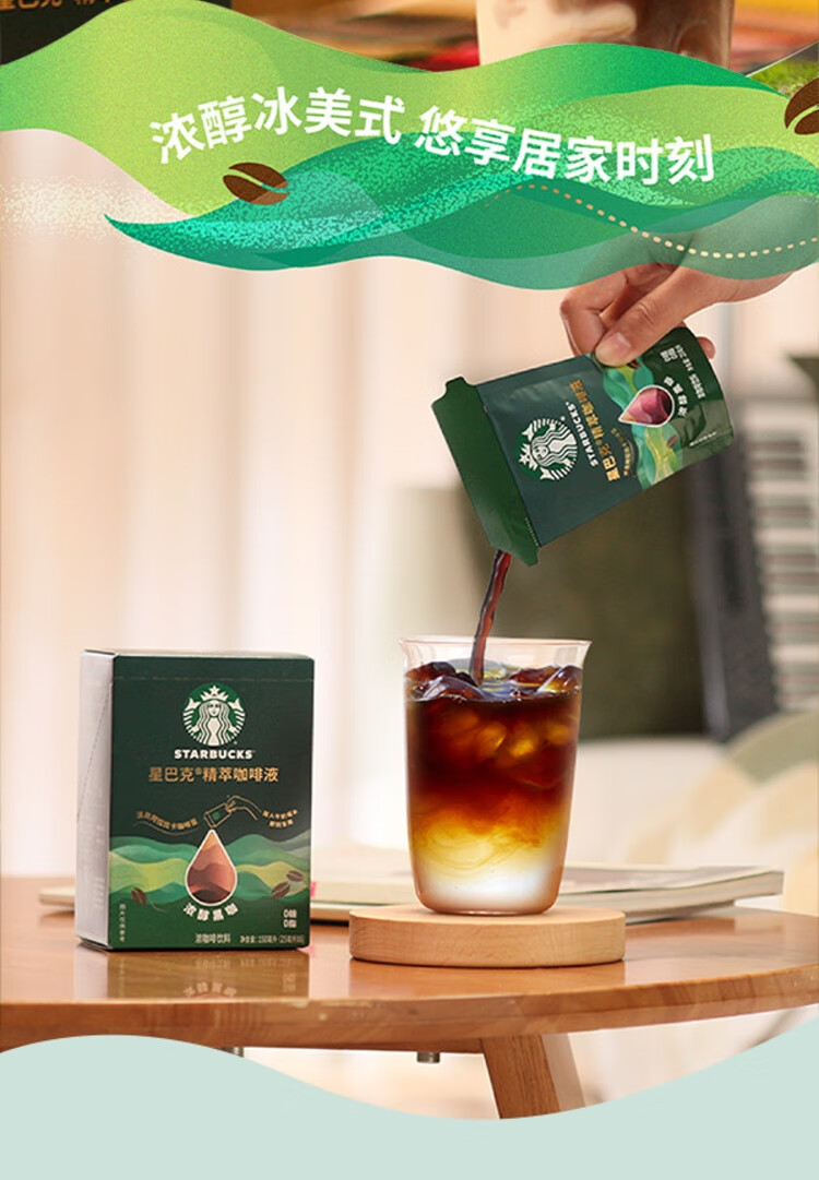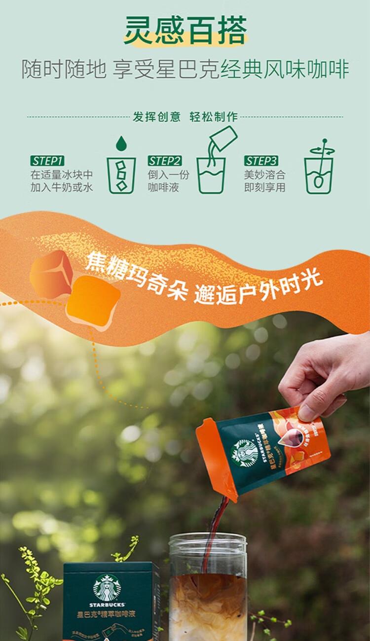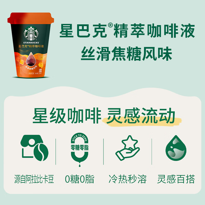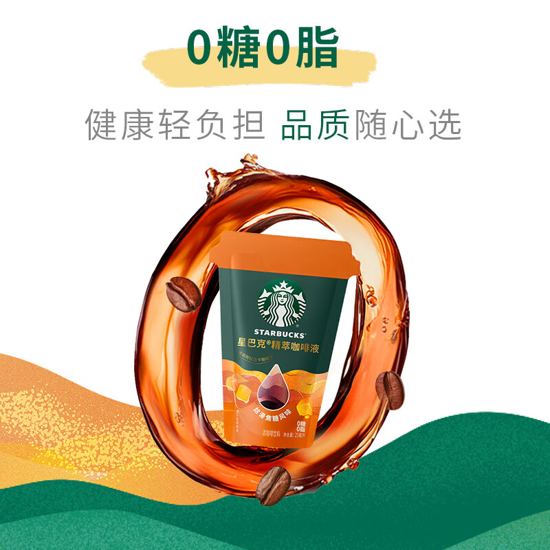 星巴克0糖0脂即享黑咖啡精萃咖啡液丝滑焦糖风味25ml*6杯