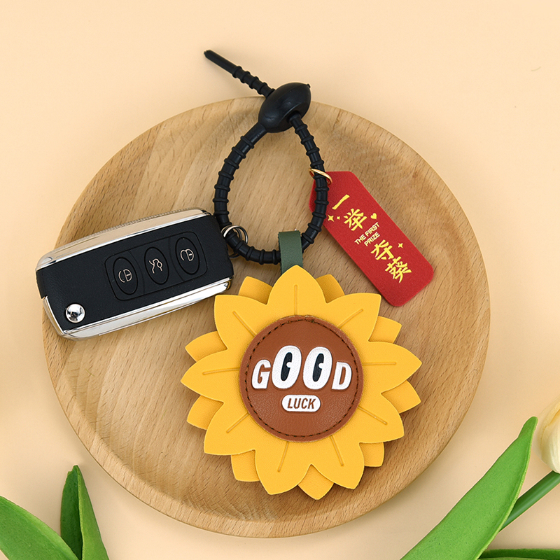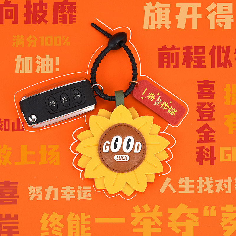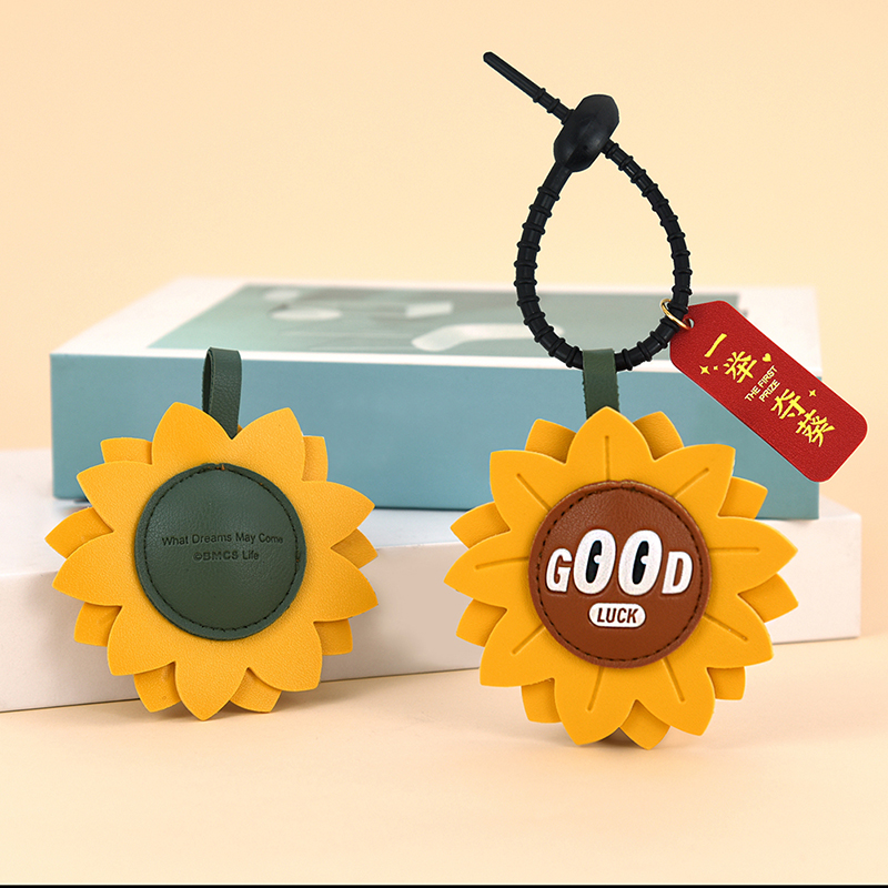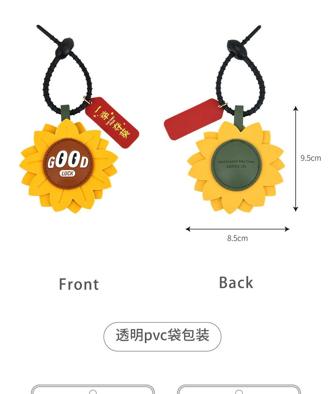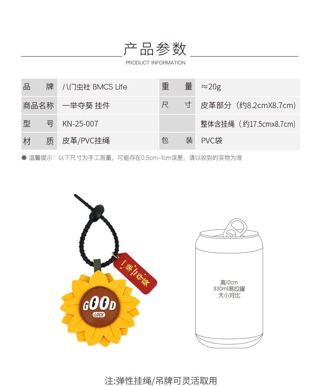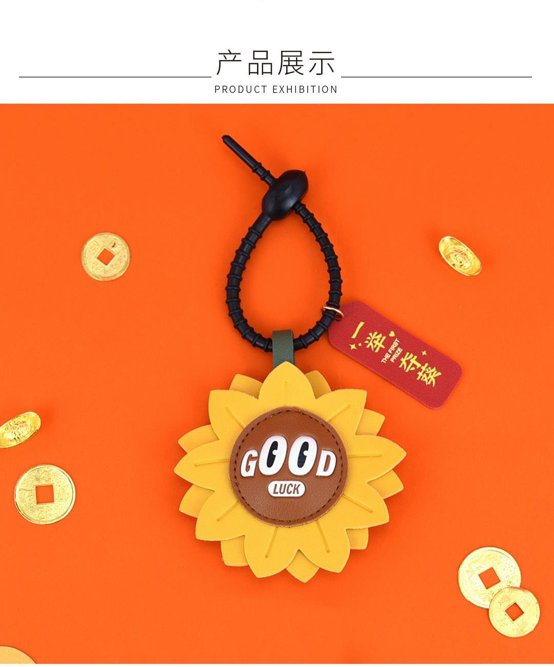 一举夺葵(约8.2cmX8.7cm) 大小大概是一只掌心大小 产品可多功能使用 如做包挂挂件/钥匙扣/车挂件 选料选用PU皮材质,耐磨耐用不易变形 内里填棉线,柔软有弹性 做工上精致的缝合走线,牢固不脱线 挂件边缘皮革手工多边打磨,不毛糙,经久耐用