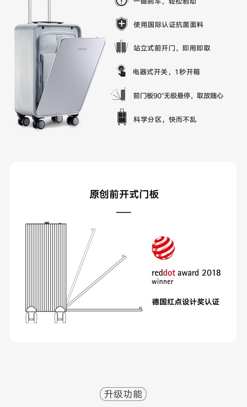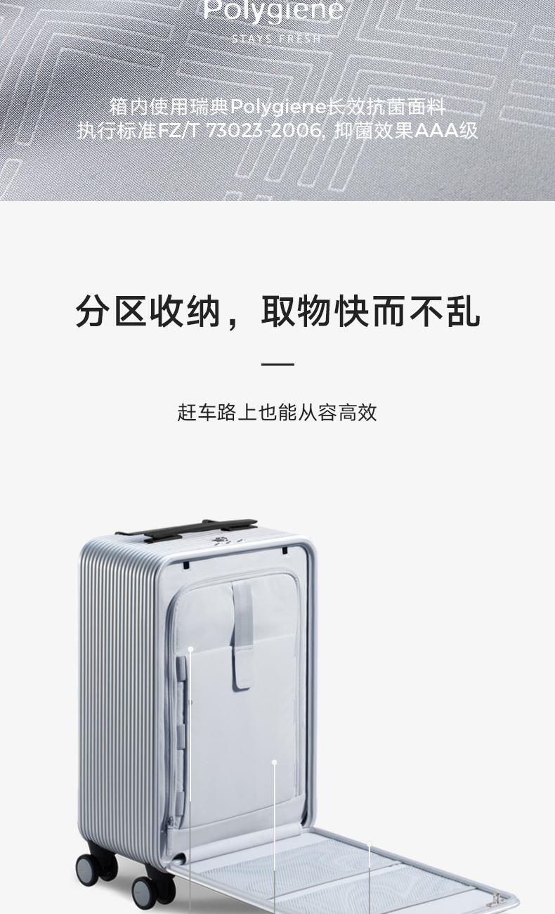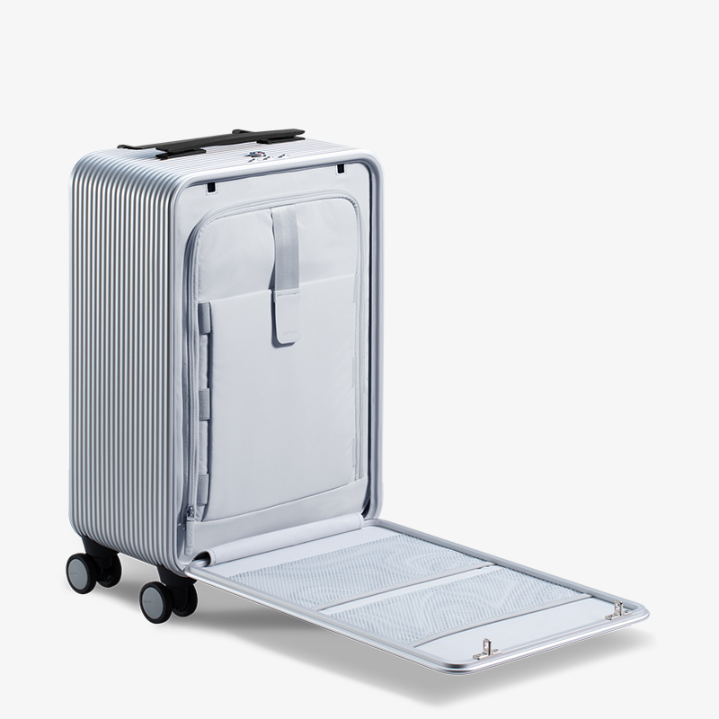 即刻系列托运箱,为全球旅行者所打造。使用航天级六系铝镁合金材料制作,搭配无缝咬合的箱体设计,让行李箱有更高强的防爆能力。升级版则使用碳钎维门板,一上市便荣获 2019 德国红点产品设计大奖。 荣获德国红点产品设计大奖 双防爆 TSA 按压锁 内设商务挂钩,可妥善收纳正装