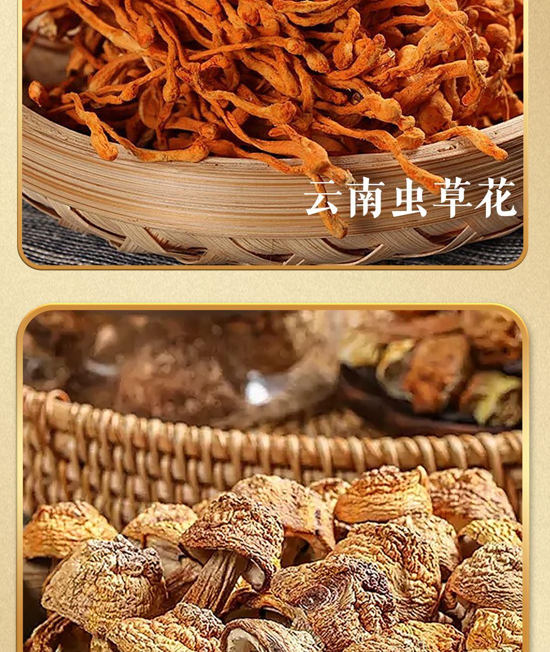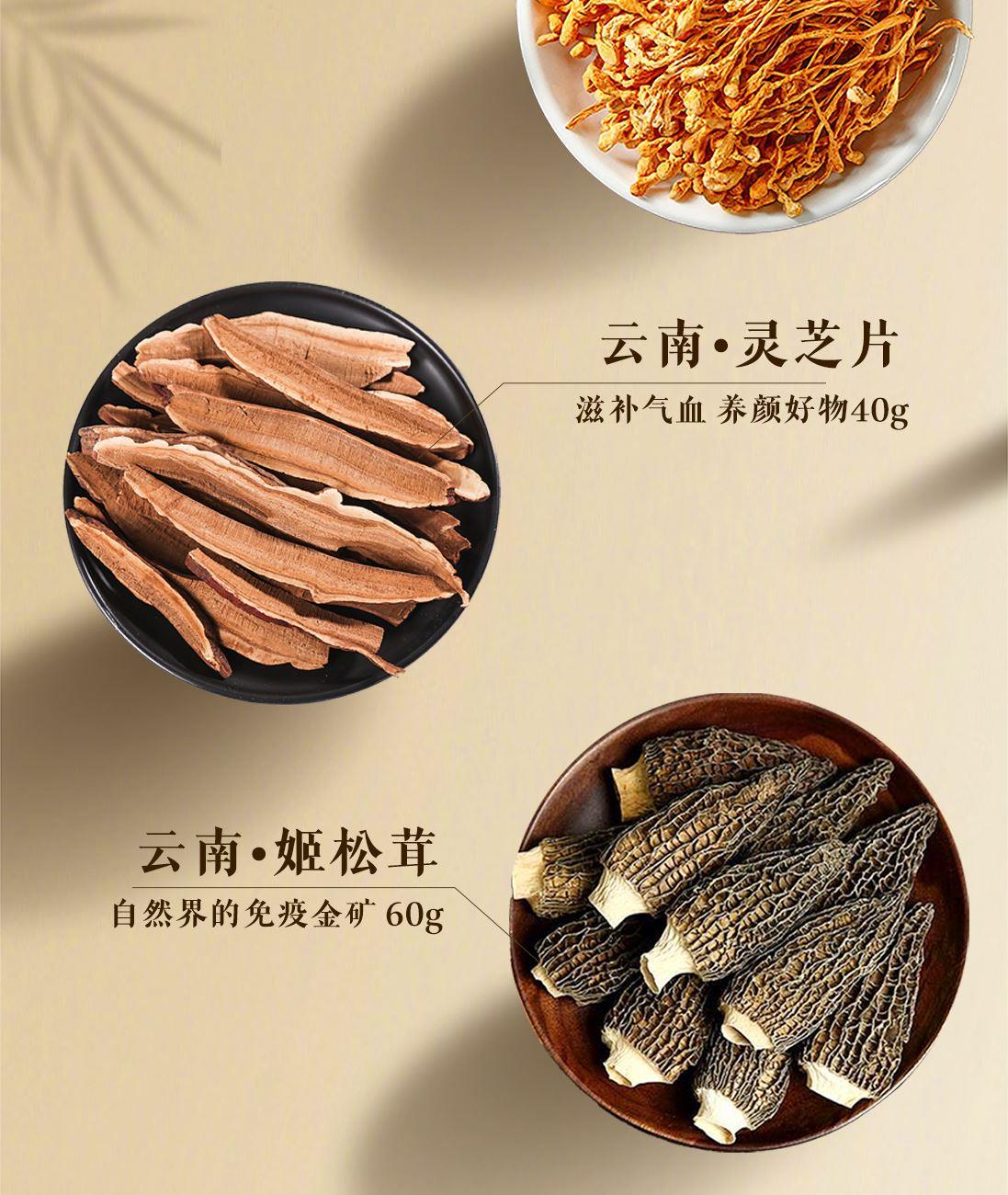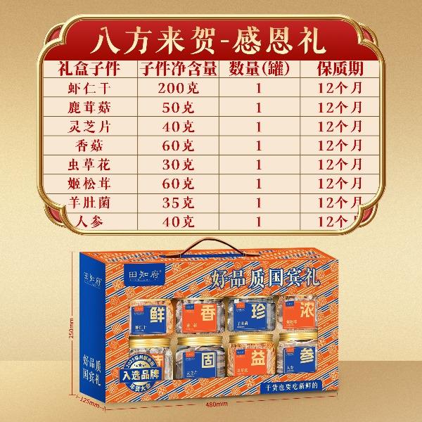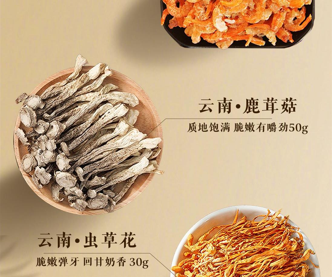 配置:虾仁干 200g、鹿茸菇 50g、灵芝片40g、香菇60g、虫草花30g、姬松茸60g、羊肚菌35g、人参40g 商品规格:515g/盒 产品尺寸:450*250*125mm 保质期:12个月 京东自营销量好评1w+,源头工厂,支持项目授权,项目保护