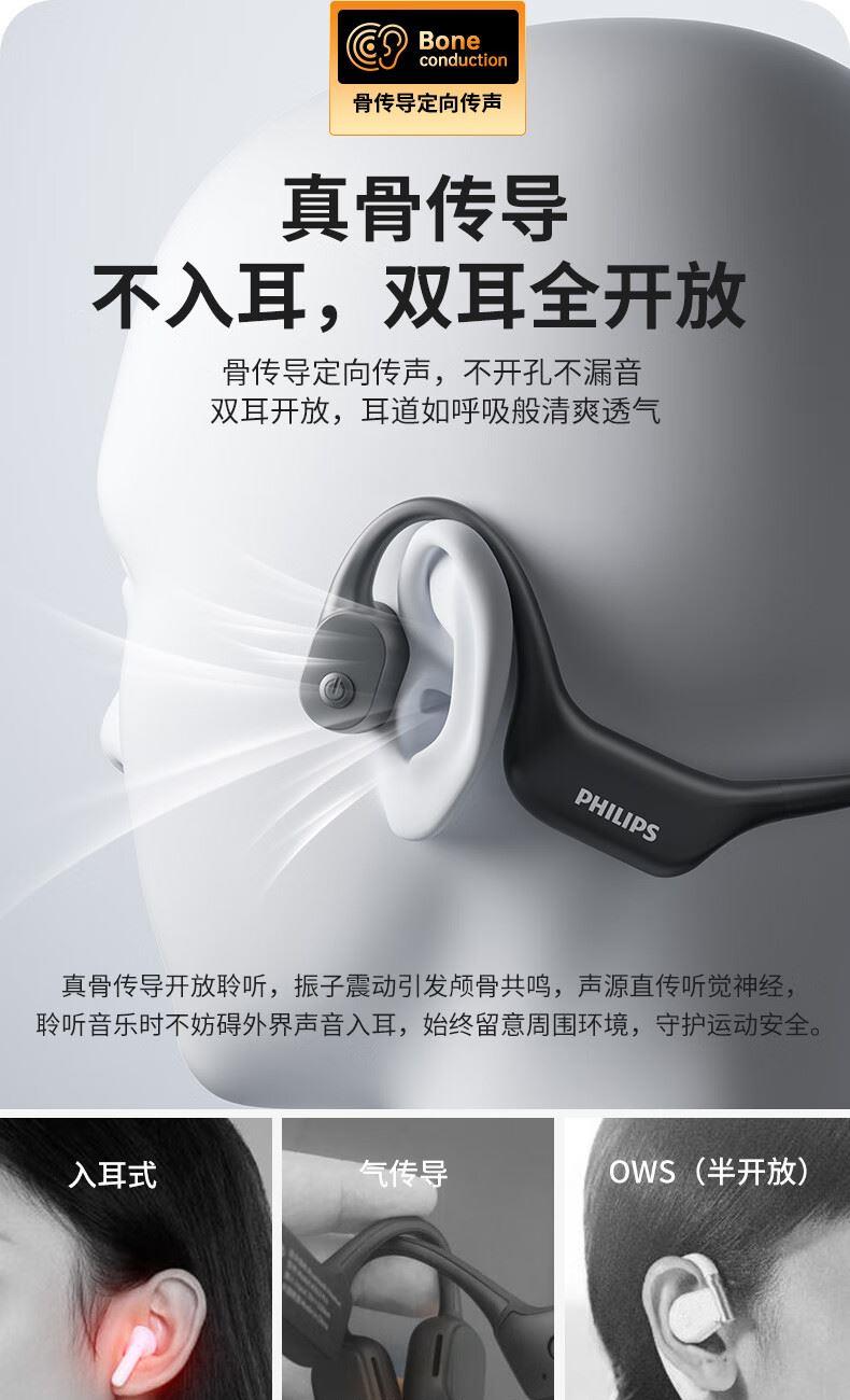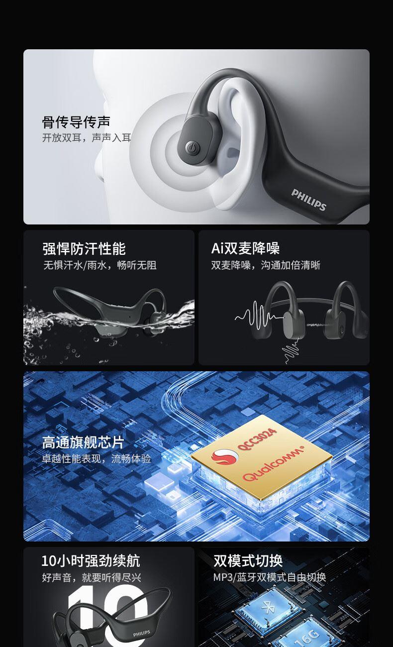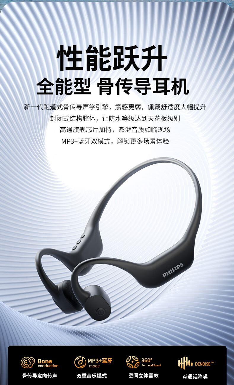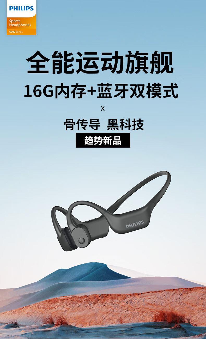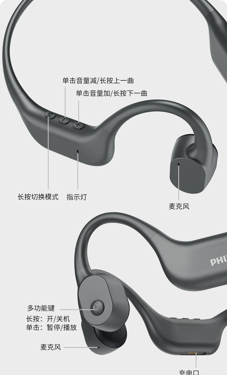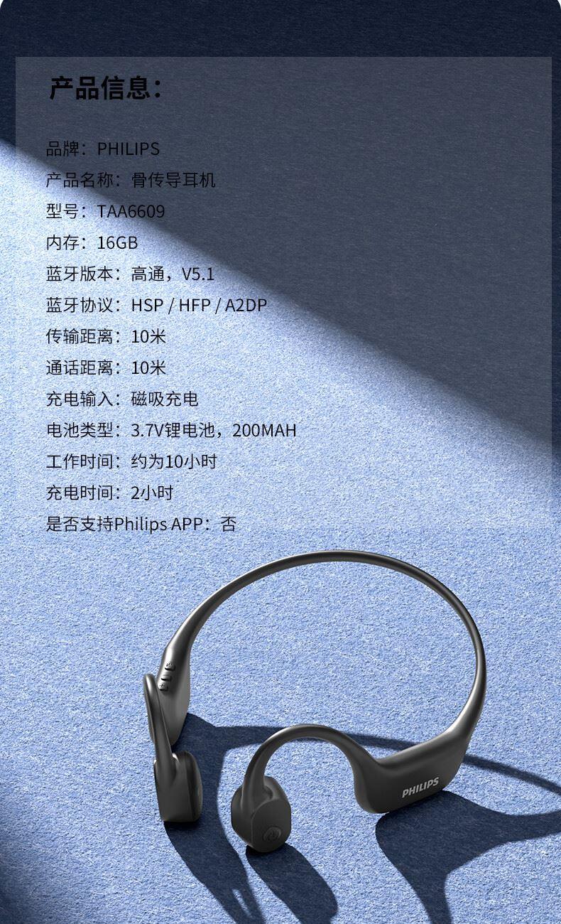 • 飞利浦16G内存骨传导蓝牙耳机TAA6609