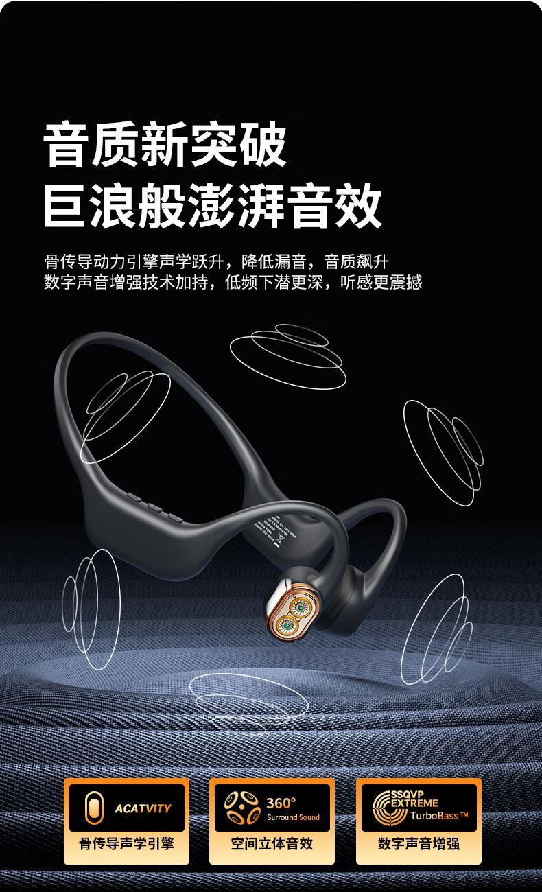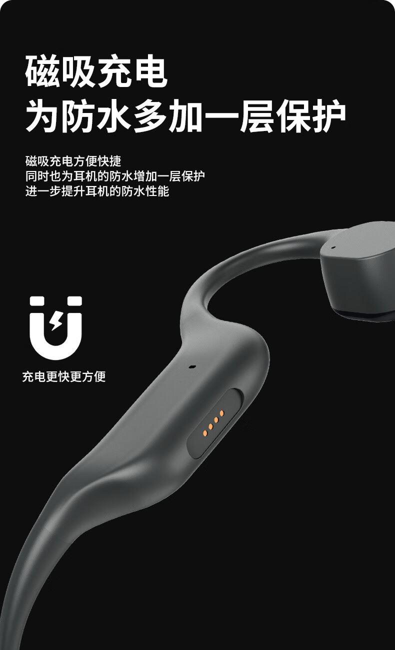 型号:TAA6609内存:16GB 蓝牙版本:高通,V5.1蓝牙协议:HSP/HFP/A2DP 传输距离:10米 通话距离:10米 充电输入:磁吸充电电池类型:3.7V锂电池,200MAH工作时间:约为10小时充电时间:2小时是否支持Philips APP:否 1、骨传导定向传声,不开孔不漏音;双耳开放,耳道如呼吸般清爽透气。 2、全封闭腔体设计,纳米防水镀层,无惧汗水雨水侵蚀,IPX7级防水等级,运动不再受限。 3、自带16G内存,可下载存储4000+歌曲,MP3+蓝牙双模式。 4、人体工学设计,重力拆解,佩戴贴合牢固,无需担心耳机掉落、晃动、移位。 5、骨传导动力引擎声学跃升,数字声音增强技术加持,低频下潜更深,听感更震撼。 6、搭载全新升级高通旗舰芯片,信号更强,体验更流畅。 7、AI双麦克风降噪,面对面式沟通体验