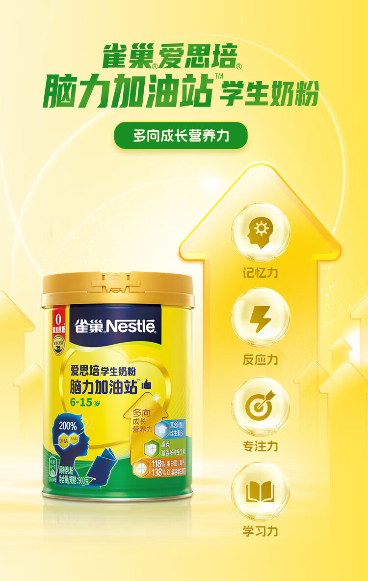 雀巢(Nestle)爱思培脑力加油站学生奶粉900g罐装